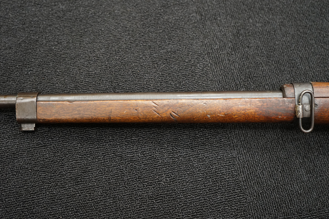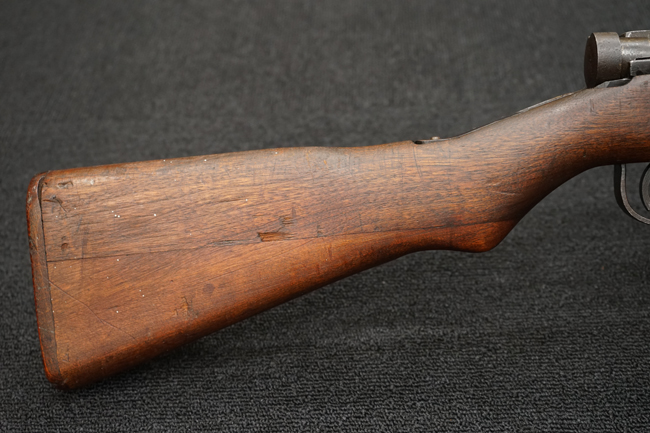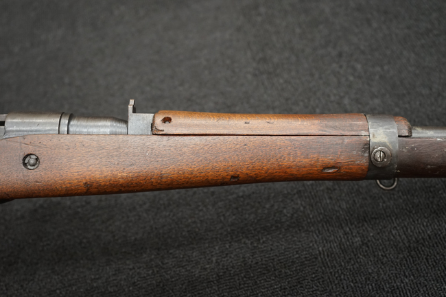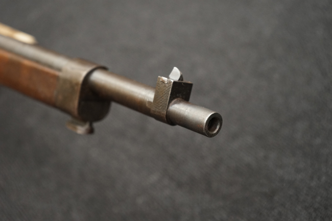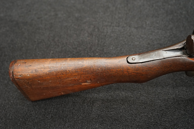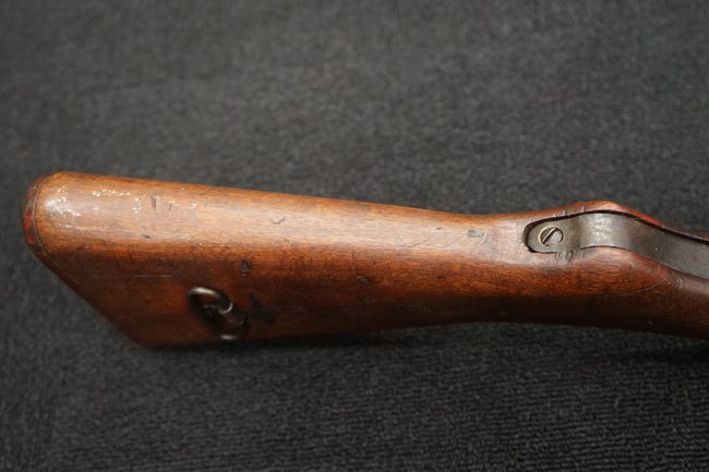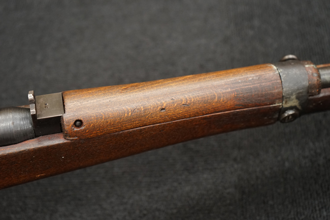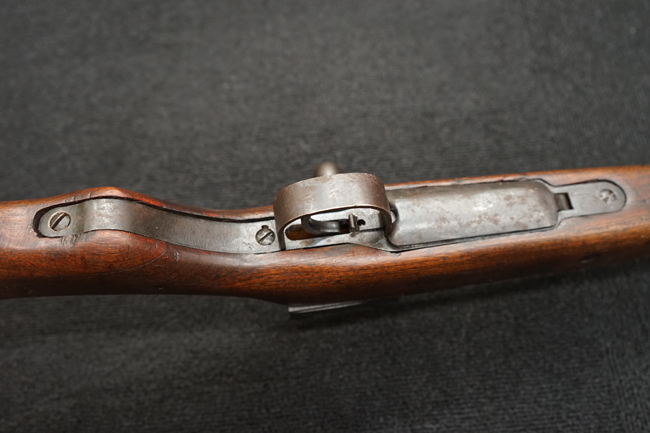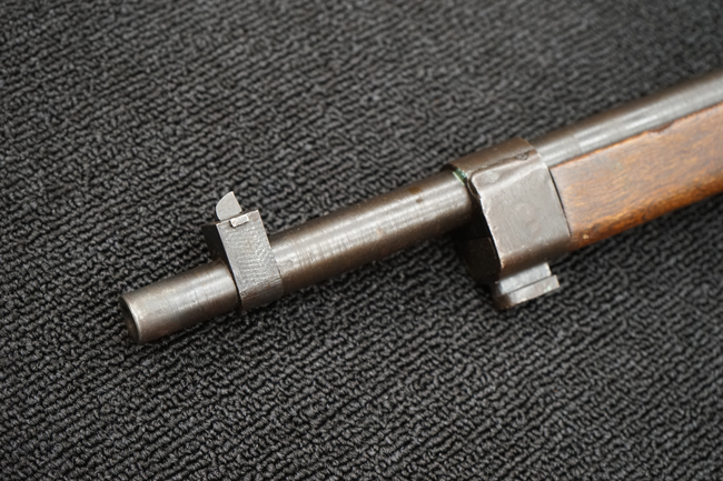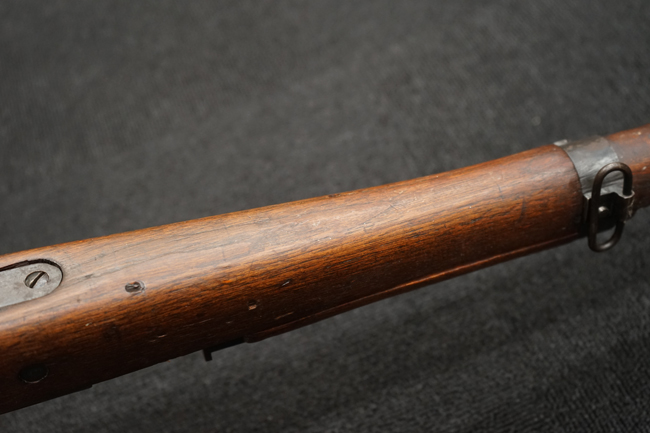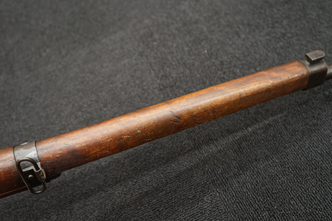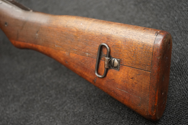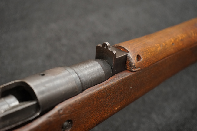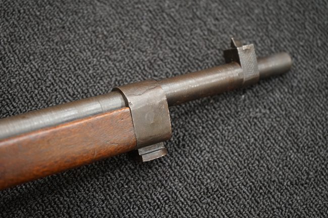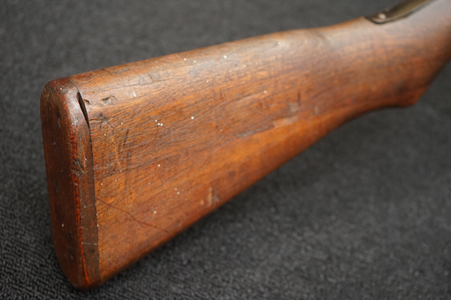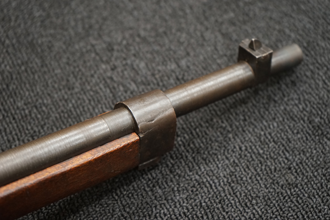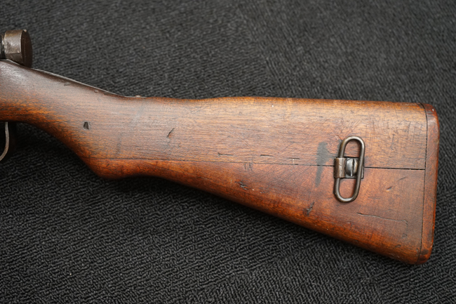 本品は全体に金属部には小傷や擦れ、若干の表面錆等の経年感は見られるものの、製造された時代を考慮すると十分に良好な状態が保たれています。 木部については所々打ち傷や擦れが見られますが大きな破損や欠損等は見られません。 末期型は前床が下帯部で分離式となっている構造のため本品も僅かにガタつきが見られます。 傷みやすい木製バット・プレートについても若干の打ち傷は見受けられるものの、目立った破損等は見受けられず、しっかりとした状態が保たれています。 旧軍特有の銃床上下の継ぎ目についても、若干の隙間が見られるものの大変良好な状態が保たれています。