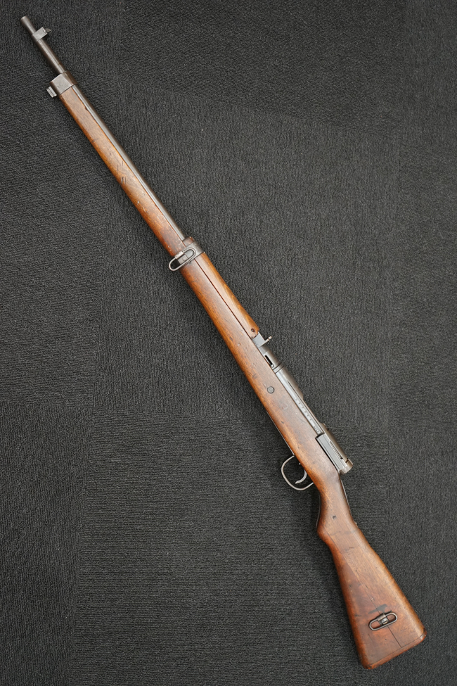 本品は九九式短小銃 末期型 (東京重機製) シリアルNo. 12344で第三国で使用されていない基本的に旧軍が使用したままの状態の品です。 この短小銃を生産した東京重機工業は1938年12月に設立、東京都北多摩郡に所在し戦中は九二式重機関銃や九九式短小銃生産を主に製造しました。