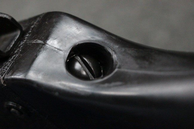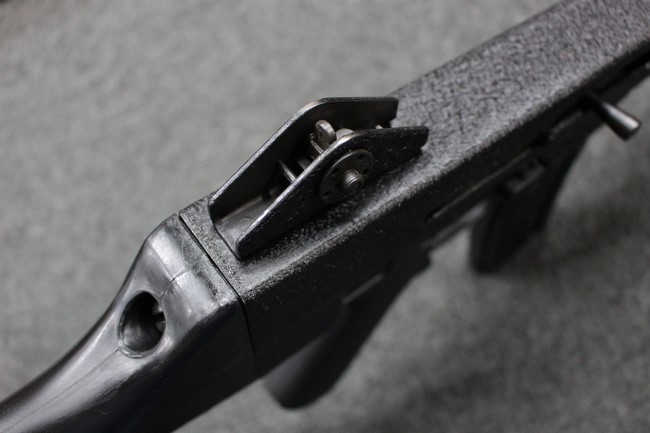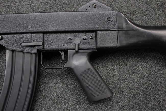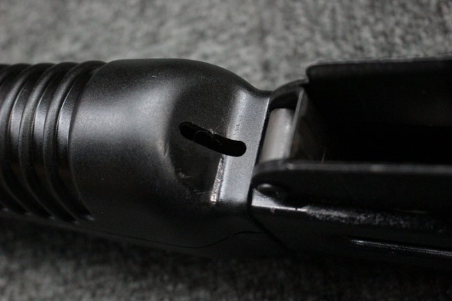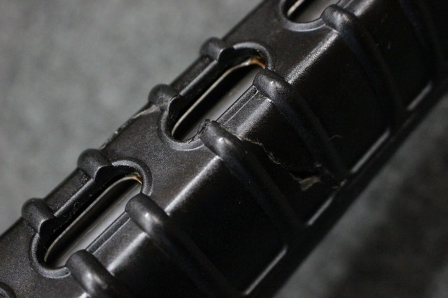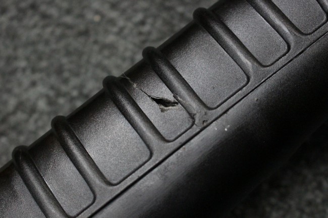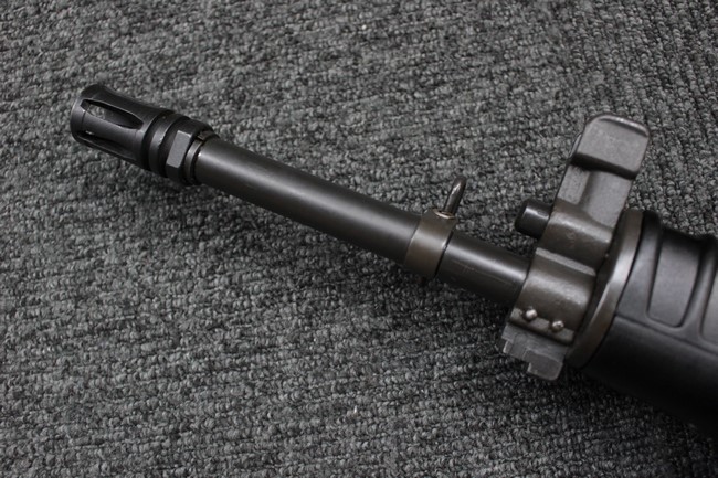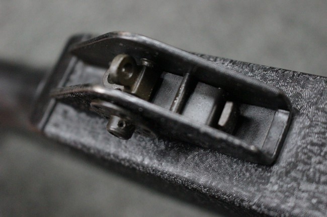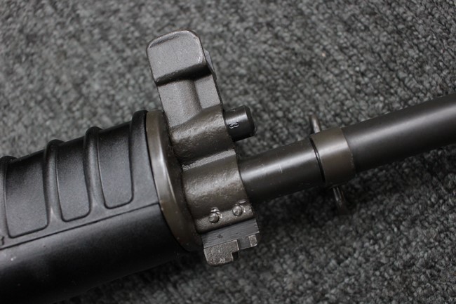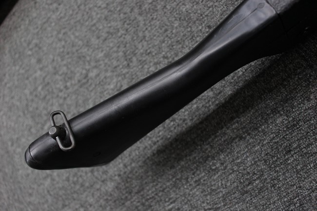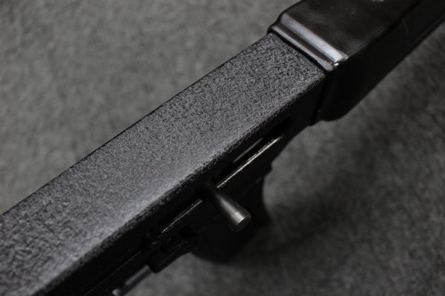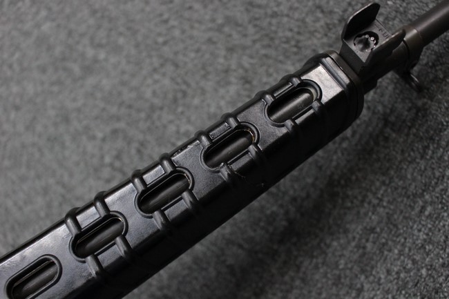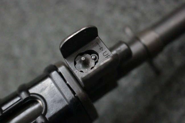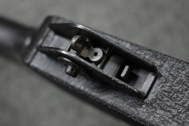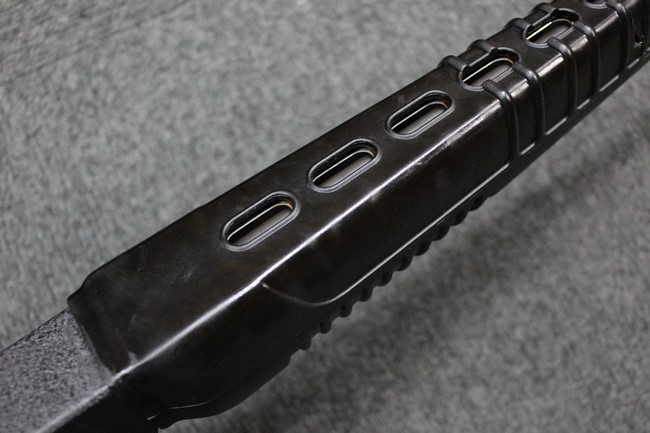 本品は全体に使用感も比較的少なく、SAR80の特徴であるスターリング短機関銃と同様のレシーバーのシボ塗装についても剥落等は最小限となっています。 アッパー・ハンド・ガードの前方右側面には脱落等は無いものの何かに当たったと思われるクラックが見られます。 しかしグリップ、バット・ストックといった他の樹脂部は保管上の若干の小傷や擦れ等は見受けられるものの、こちらは目立った欠損等は見受けられず、総じて良好な状態が保たれています。 ゴム製のバット・プレートについても若干の擦れを除いて目立った経年劣化等は見受けられません。