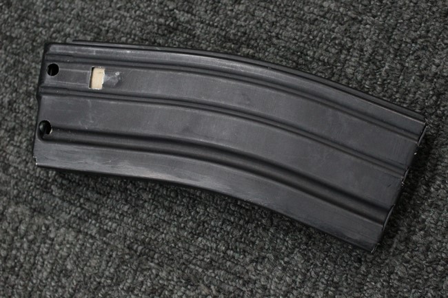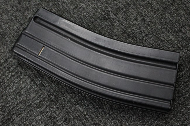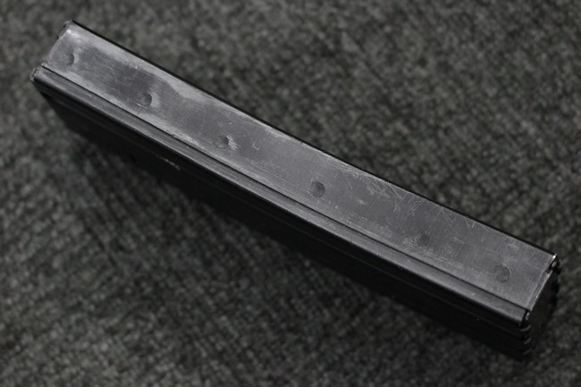 マガジンの着脱やリア・サイト及びセレクター、ガス・レギュレーターの切り替え、本体右側面のスライド式ダスト・カバー操作等は問題なく行う事が可能です。 付属のマガジンは純正のアルミ製30連タイプで、若干の小傷や擦れを除いて目立った凹みや変形等は見受けられず、概ね良好な状態が保たれています。 尚、マガジン・スプリングは入っていません。