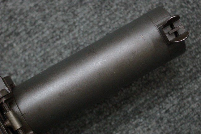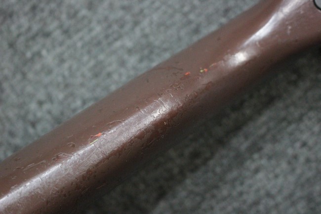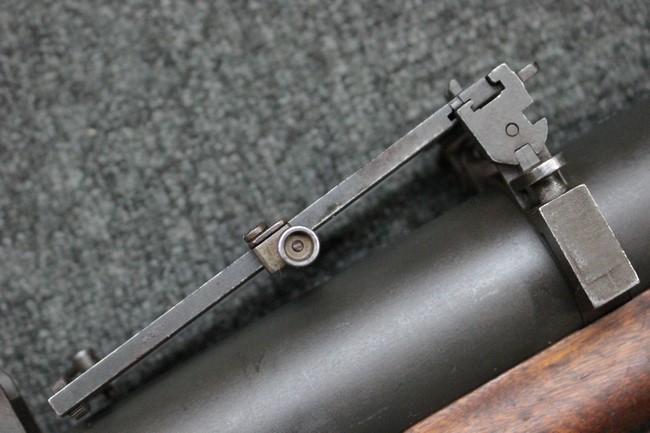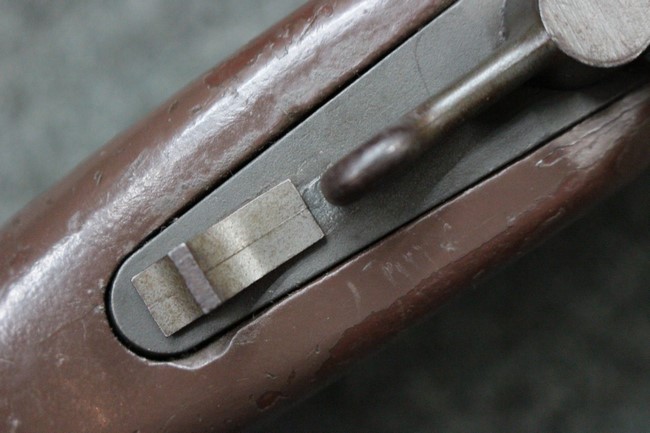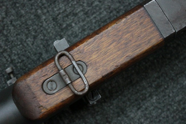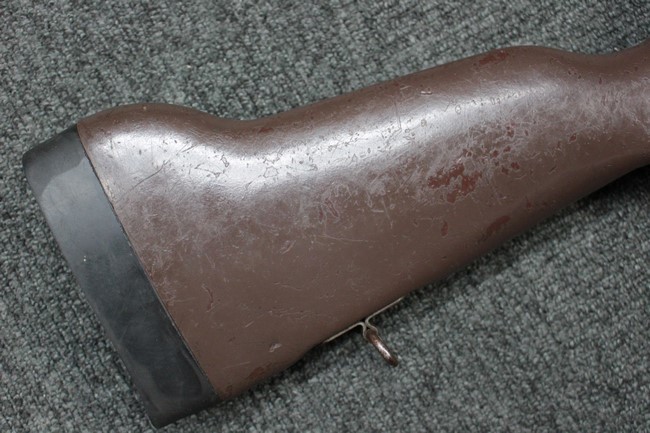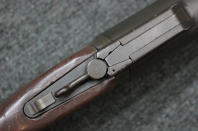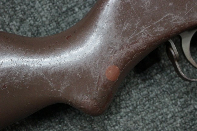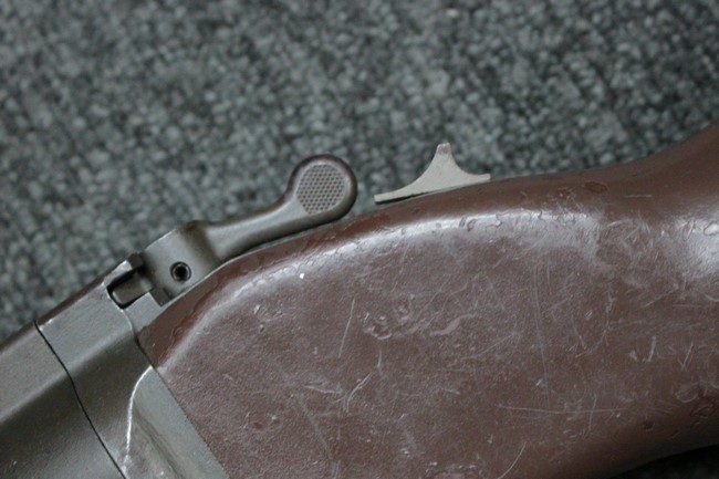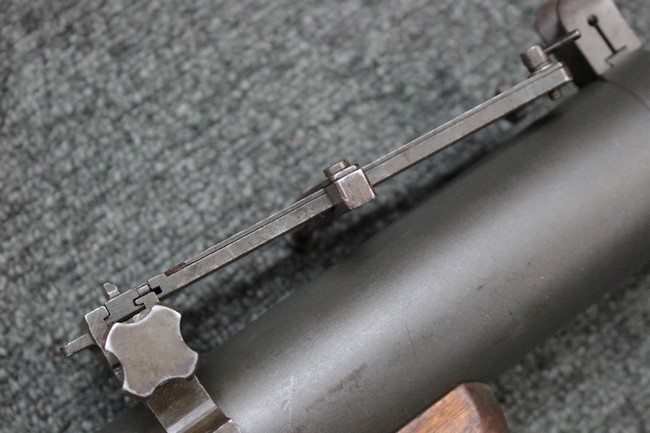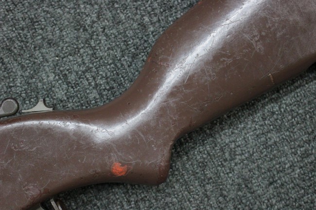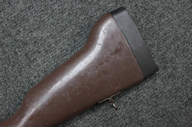 本品は適度な使用感が見受けられ、金属部はやや小傷や擦れ、一部に経年による褪色や表面錆、仕上げが落ちて金属の地肌が表れている箇所が見受けられるものの、大きな欠損等は見受けられず、概ねしっかりとした状態が保たれています。 銃床表面についても、やや線傷や塗膜の剥落が散見されるものの、こちらも現状目立った破損等は見受けられません。 傷み易いゴム製のバット・プレート部分についても、若干の打ち傷や僅かな欠けが見受けられるものの、目立った経年劣化等は見られず、柔らかさを保っており強度的にもしっかりとしています。 リア・ラダー・サイトの調整やトリガー・ガードの折り畳み操作については問題なく行う事が可能です。 (NI)(AW)