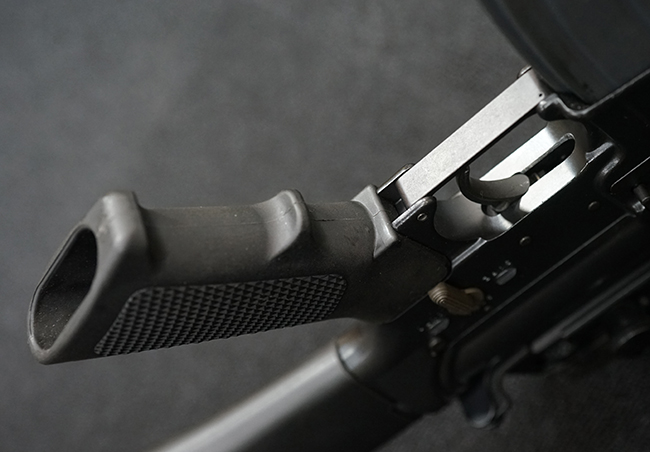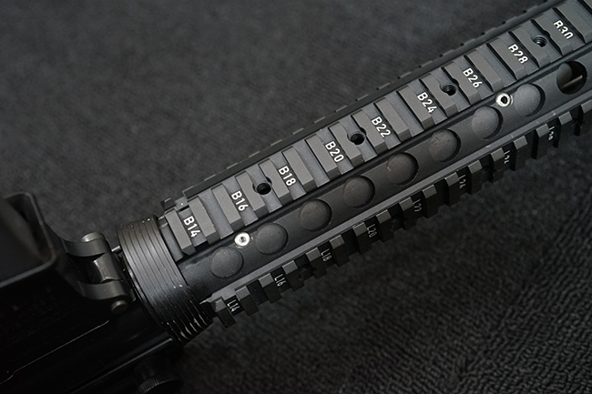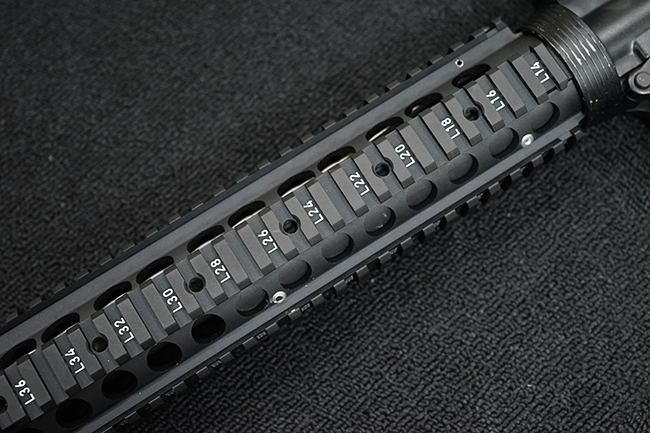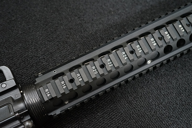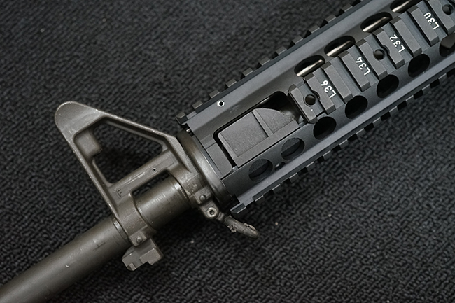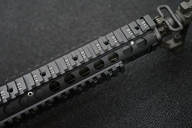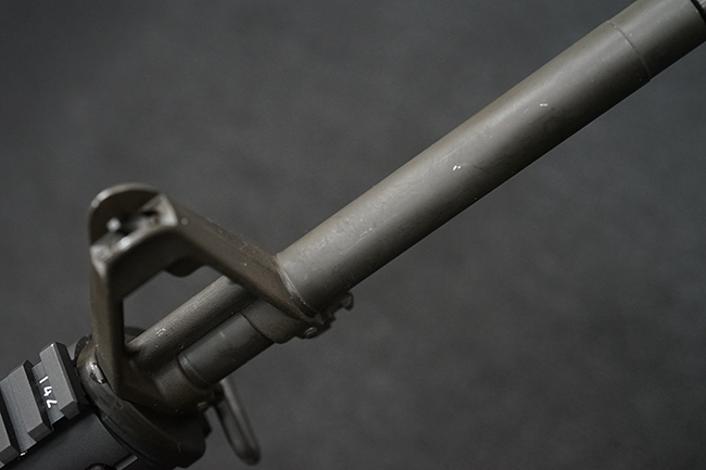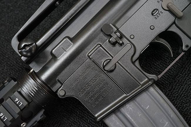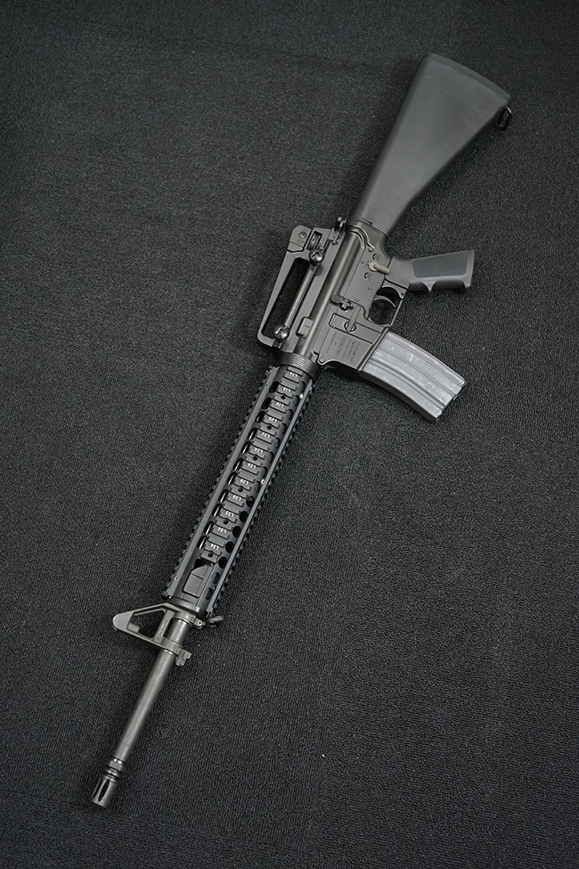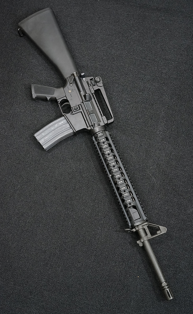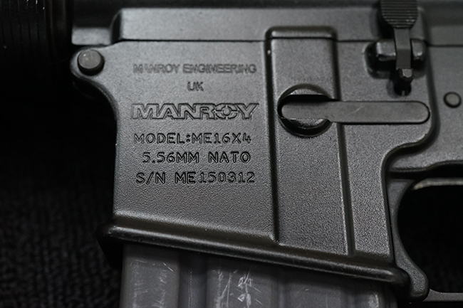 本銃はM16A4 自動小銃のクローンの一つで、英国のマンロイ・エンジニアリング社により製造されたモデルです。 同社におけるモデル名はME16X4ですが、基本的な仕様はオリジナルのM16A4 自動小銃と同様で、セミ/フル・オートマチック射撃の切り替えが可能なトリガー・グループを備えています。 マンロイ・エンジニアリングは1975年に設立され、以来英国国防省に小火器やその部品を供給してきましたが、2017年にベルギーのFNハースタル・グループの傘下となり、現在はFNH UKとして英国におけるFN社製品の製造を手掛けています。
