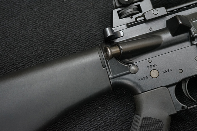 M16シリーズは、米国アーマライト社のユージン・ストーナーが設計し、コルト社が製造を行って1962年に米空軍が採用したM16 (コルト社内モデル名AR-15・M601) に始まる一連の自動小銃です。 M16は米陸軍でも採用が検討され、1967年にそれまでの仮制式名であるXM16E1に代わり、M16A1の陸軍制式名が与えられました。 M16A1 (コルト社内モデル名M603) は、仮制式モデルであるXM16E1 (陸軍向けM602) と同様にボルト・フォワード・アシストを備えており、マガジンから薬室への装填不良が発生した際にもボルトを手動で前進させる事が可能となっています。 また、M16A1ではマガジン・リリース・ボタンの誤操作を防ぐ為のリブが追加された他、ボルトを始め内部部品が強化されました。 M16A1はベトナム戦争拡大に伴う大量の需要に応える為、コルト社以外にもゼネラル・モータースのハイドラ・マチック・ディビジョン及びハーリントン&リチャードソン社でも生産が行われた他、輸出向けとしても大量に生産され、これらの輸出向けM16A1にはM613のコルト社内モデル名が与えられました。