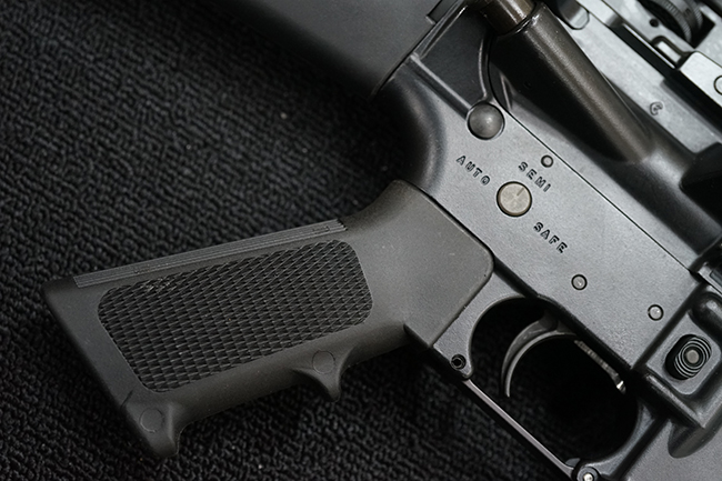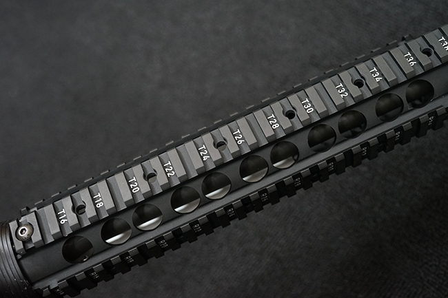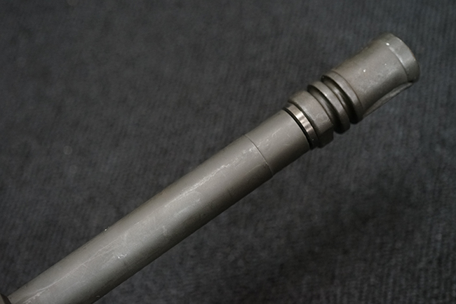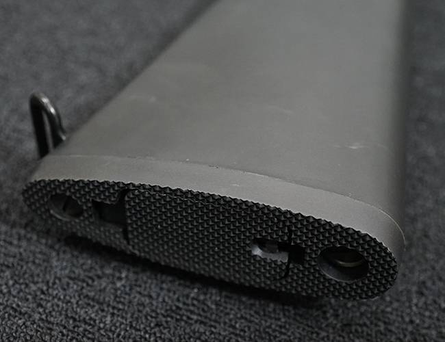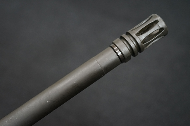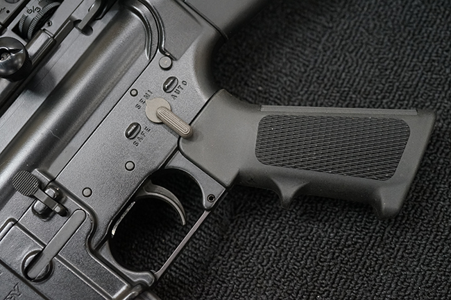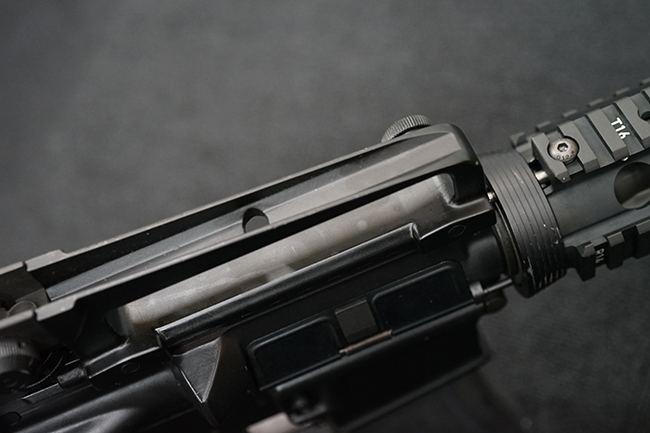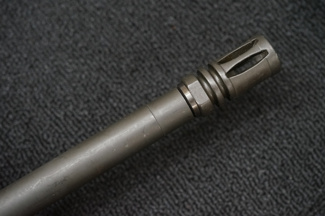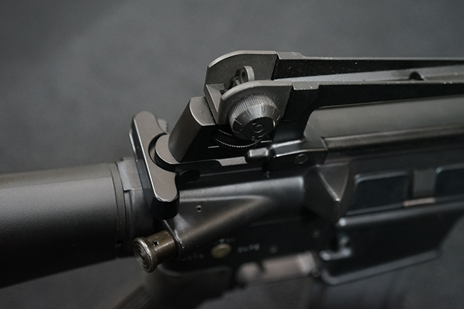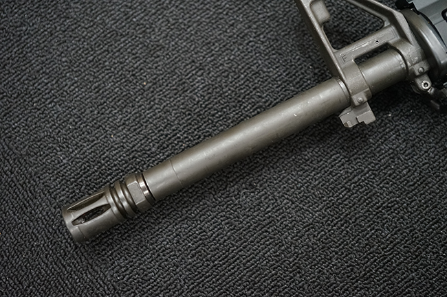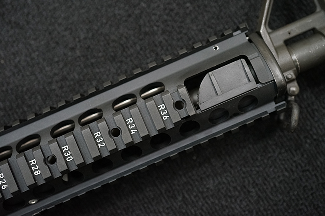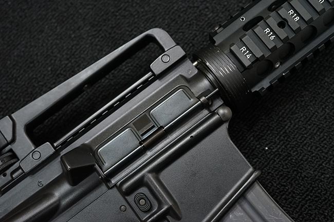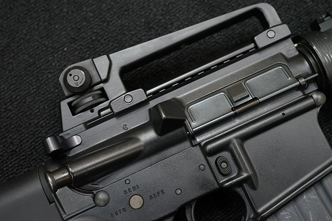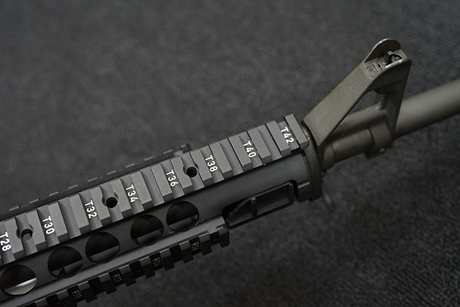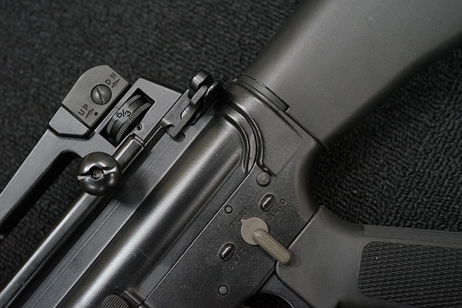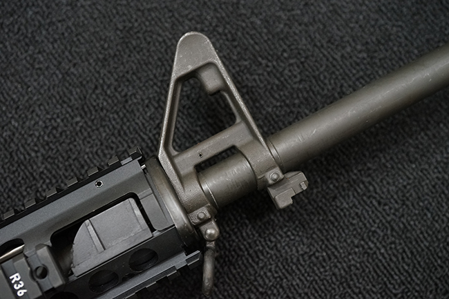 改良型のM16A2では、M16A1で使用された.223 レミントン弾 (米軍制式名M193)に代わって、より弾頭が重い5,56mm NATO弾 SS109 (米軍制式名M855) に対応する為、ライフリング・ピッチがM16A1の1:12 (※12インチで1回転) から1:7へと変更されており、銃身もヘビー・バレル化されています。 射撃機能はフル・オートマチック射撃を廃して3点バースト射撃機構が組み込まれています。 リア・サイトは多段階調整式へと変更されており、排莢孔後方にはカートリッジ・ディフレクターと呼ばれる突起が追加されました。 ハンドガードはM16A1が装備していた三角断面の左右分割式に代わり、円筒型で上下分割式のタイプに変更されました。 また、ハンドガード及び銃床の材質は高強度のナイロン系樹脂製となり、銃床は若干延長されています。 バード・ケージ型のフラッシュ・ハイダーについても、射撃時に砂塵を巻き上げないよう下面にスリットの無いタイプとなりました。