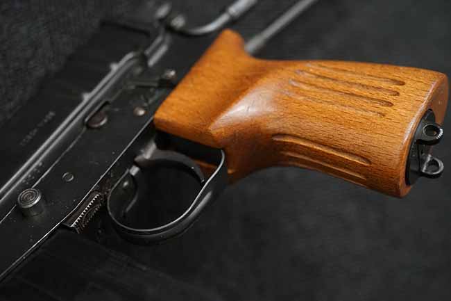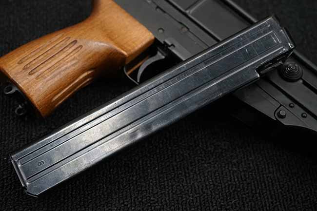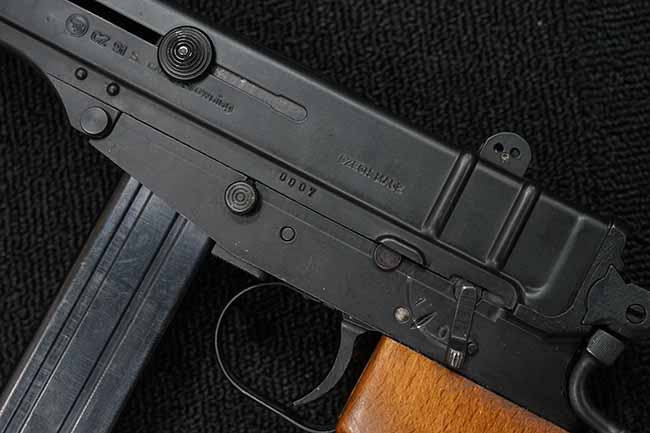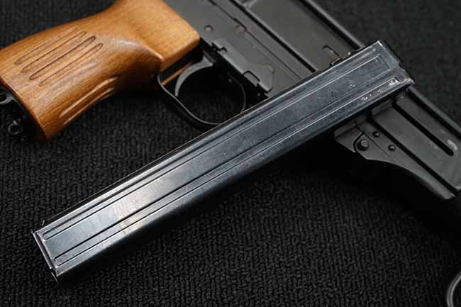 尚、戦後のチェコ製軍用銃の多くが当初はブルー仕上げで製造されていましたが、後にチェコ独特の厚塗りのグレーの焼付け塗装となった経緯が有り、このVz.61短機関銃についても、ブルー仕上げとグレー塗装仕上げの両方の仕上げが存在します。