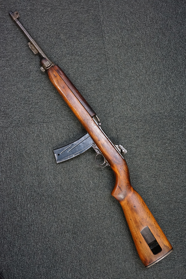 ベースとなったM1 カービンは、1941年米軍に警備用及び下士官用の軽量な自衛用火器として採用されました。 開発はウィンチェスター社で行われましたが、大戦中には他に8社が製造に加わりました。 M1 カービンはそのコンパクトなサイズから、シャーマン戦車やハーフトラック等の車両にも多くが装備されていました。