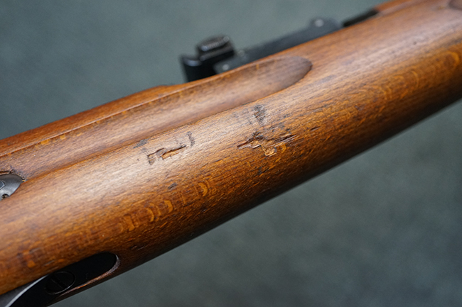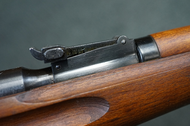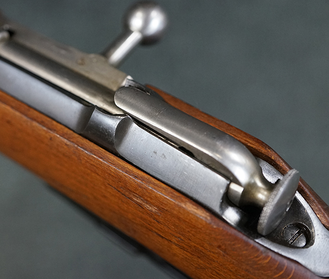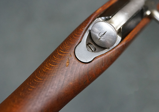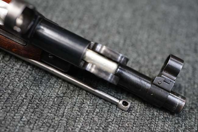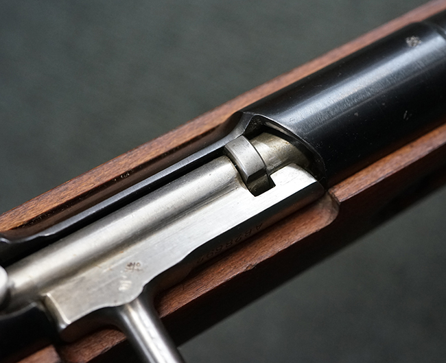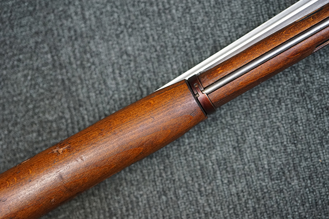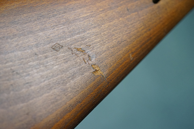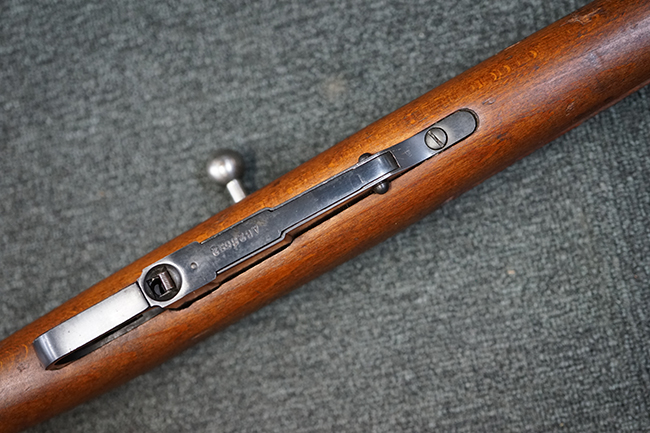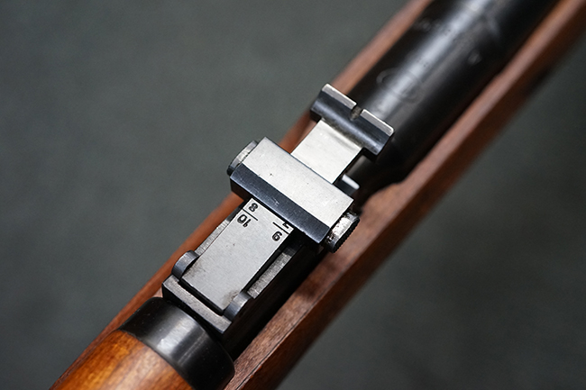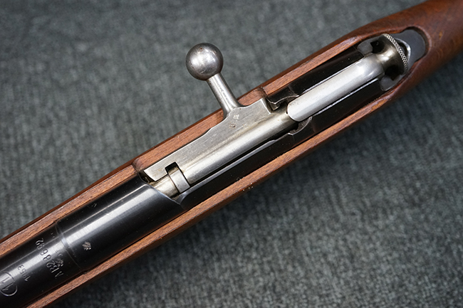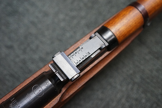 本品は全体に使用感が少なく、金属部については若干の擦れや僅かな表面錆を除いて目立った破損や欠損等も見られず、大部分にブルー仕上げが残った良好な状態が保たれています。 白磨きのボルトについても若干の時代錆が表れているものの、こちらも目立った朽ち込み等は見られず、コンディションは良好です。 木製銃床についても、やや打ち傷や表面的な欠けが散見されるものの、こちらも目立った破損等は見られず、概ね良好な状態が保たれています。 傷み易いバット・プレートについては、角の部分にやや表面錆痕や擦れが見られるものの、現状目立った変形等は見られず、銃床への取り付けもガタつきもなくしっかりとしています。 折り畳み式の銃剣はアルミ合金製の非常に精巧な合法復刻品で、オリジナルと同じように起剣が可能です。 尚、オリジナルの銃剣は付属しません。 リア・サイトの調整についても問題なく行う事が可能です。 尚、弾倉内のバネ及びフォロワーは入っていません。 クリーニング・ロッドが付属します。