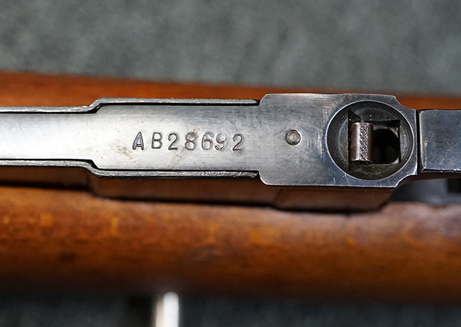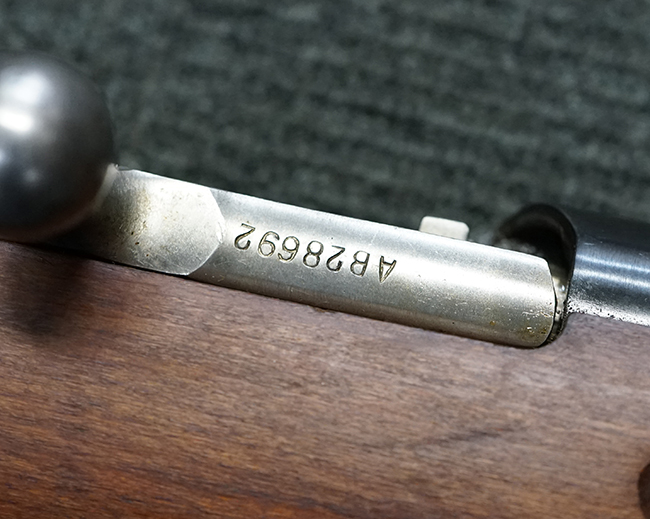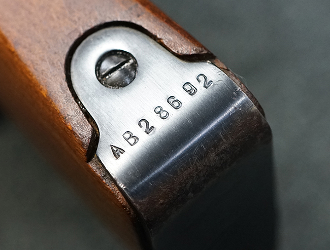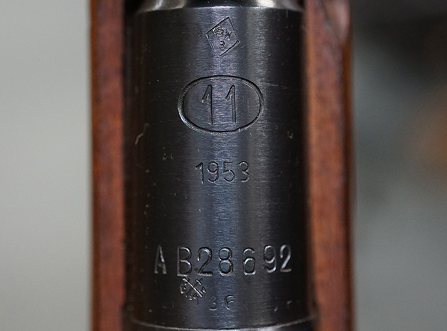 本品の薬室上面にはシリアルNo.AB28692の他、楕円形の中に数字の11番が入ったポーランド ラドムのWaltera造兵廠を示す刻印や製造年を示す1953の数字が入っています。 シリアルNo.は薬室上面とボルト、弾倉底板、バット・プレートでマッチしています。