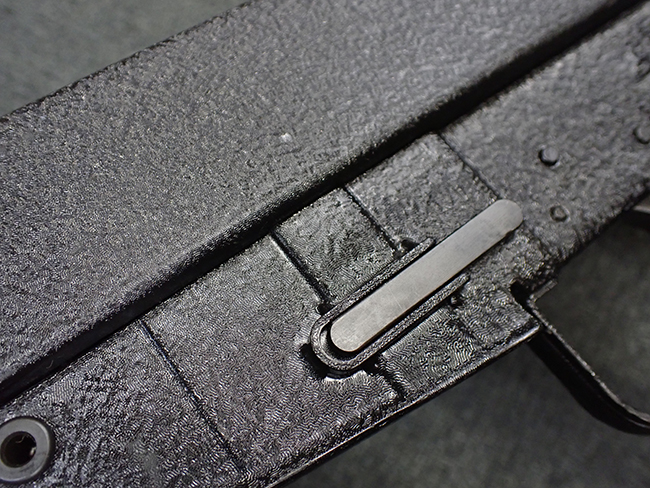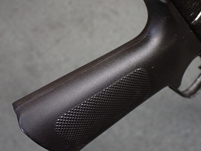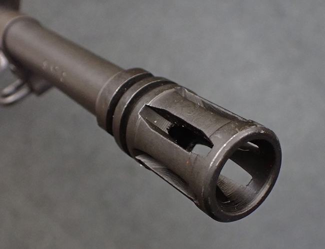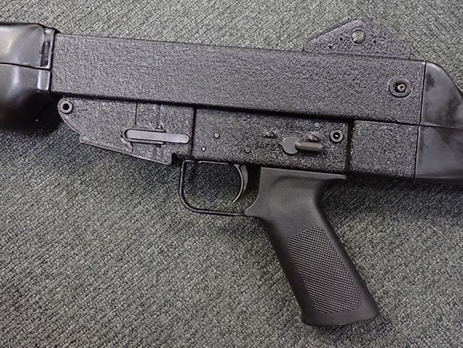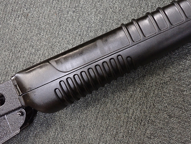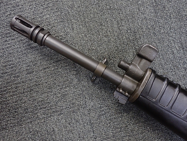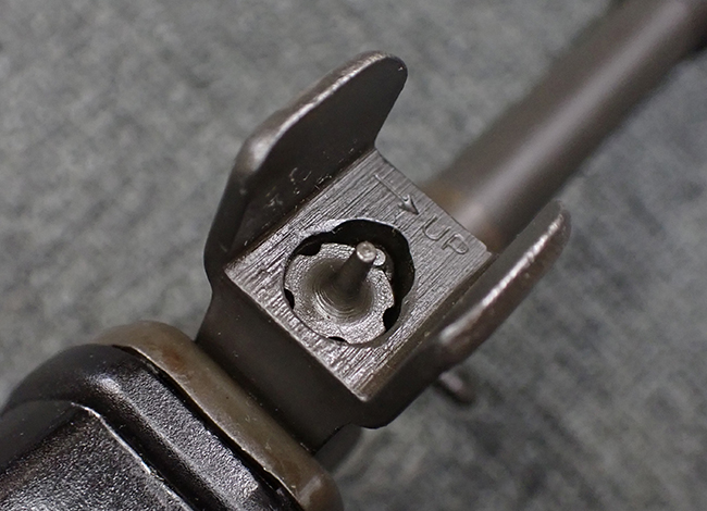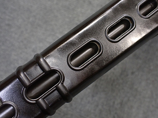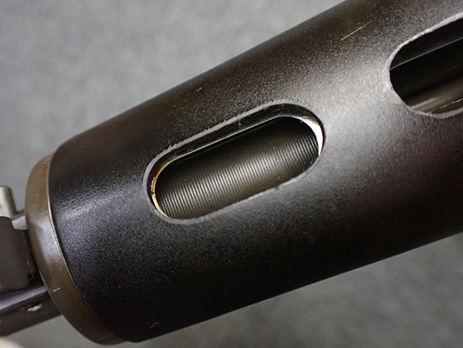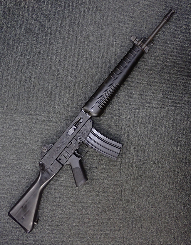 本品は全体に使用感も比較的少なく、SAR80の特徴であるスターリング短機関銃と同様のレシーバーのシボ塗装についても剥落等は最小限となっています。 ハンド・ガードやグリップ、バット・ストックといった樹脂部は保管上の若干の小傷や擦れ等は見受けられるものの、こちらも目立った欠損等は見受けられず、総じて良好な状態が保たれています。 ゴム製のバット・プレートについても若干の擦れを除いて目立った経年劣化等は見受けられません。