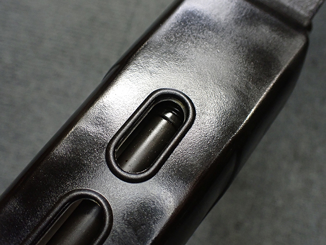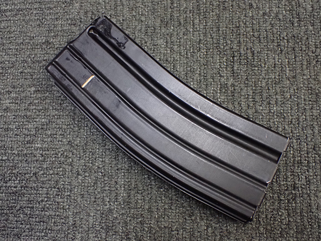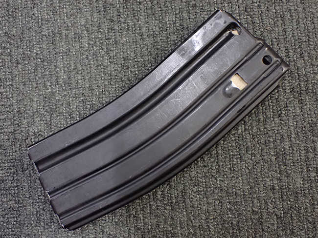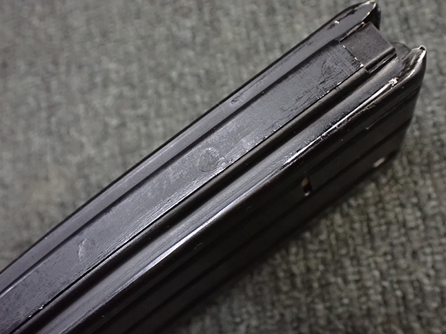 マガジンの着脱やリア・サイト及びセレクター、ガス・レギュレーターの切り替え、本体右側面のスライド式ダスト・カバー操作等は問題なく行う事が可能です。 付属のマガジンは純正のアルミ製30連タイプで、若干の小傷や擦れを除いて目立った凹みや変形等は見受けられず、概ね良好な状態が保たれています。 尚、マガジン・スプリングは入っていません。