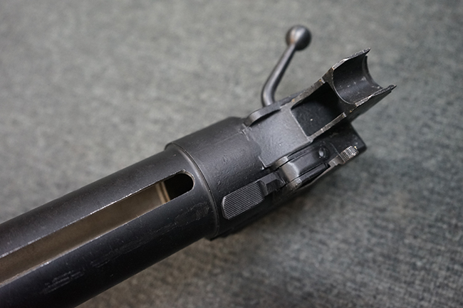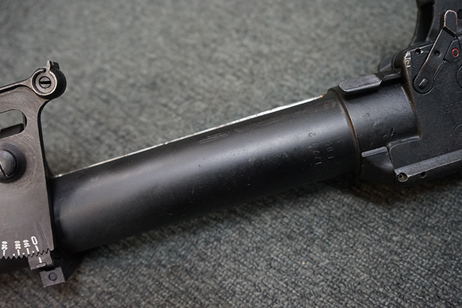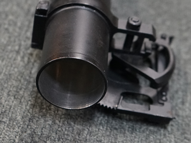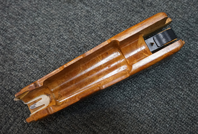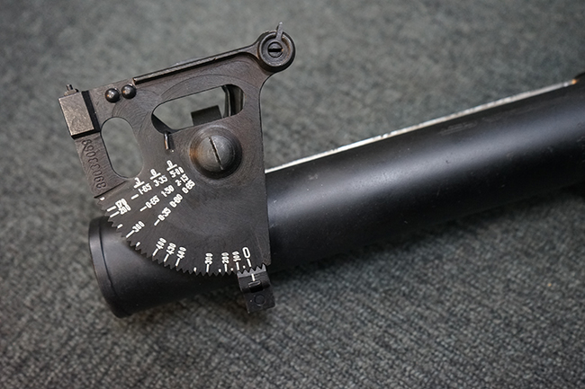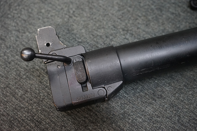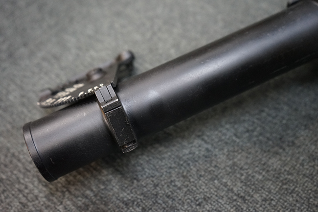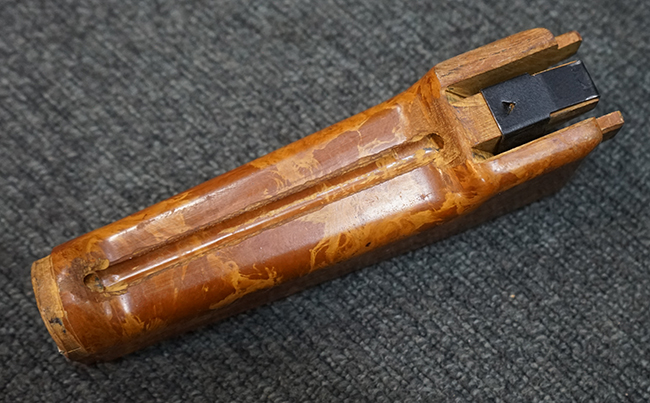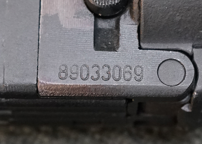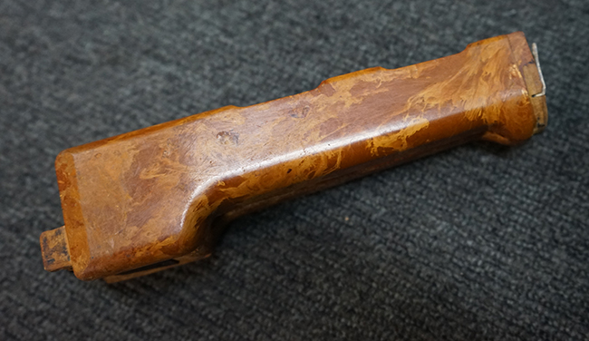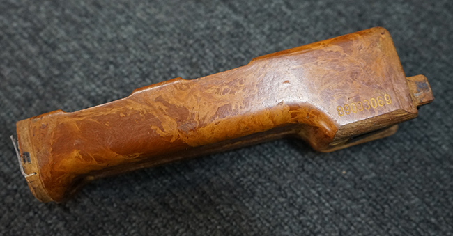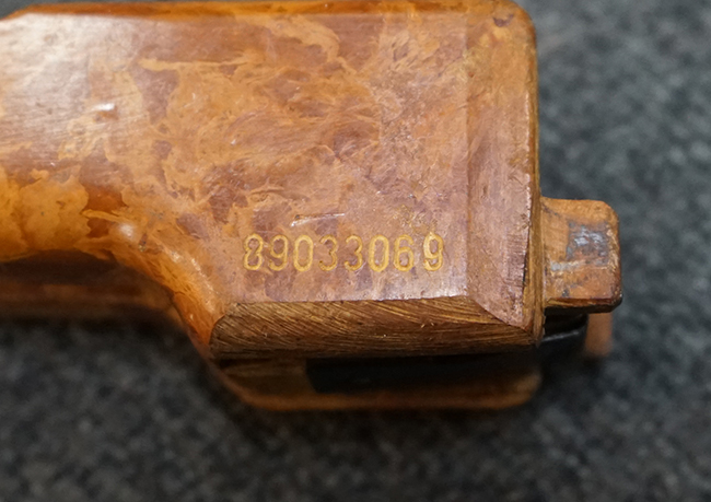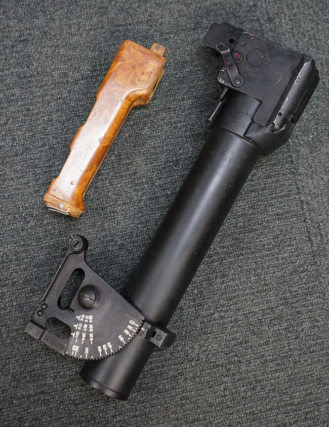 Wz.74本体の他に専用ロア・ハンドガードが付属します。 AKのロア・ハンドガードを取り外し、付属の専用ハンド・ガードと交換することでWz.74が取り付けできます。 (※AKの無可動加工によっては、取り付けられない個体もございます)。 本体は黒の焼付け塗装が施されており、一部の角部分に若干の擦れが見られるのみで全体的な表面仕上げは良好に残っています。 クアドラント・サイトについても問題なく調整が可能です。 Wz.74本体には無可動加工のインサートとスリットが施されています。 ハンド・ガードはベークライト製で若干の擦れが見られますが破損等は見られません。 ハンド・ガードには本体シリアルNo.とマッチした刻印が見られます。 (YS)