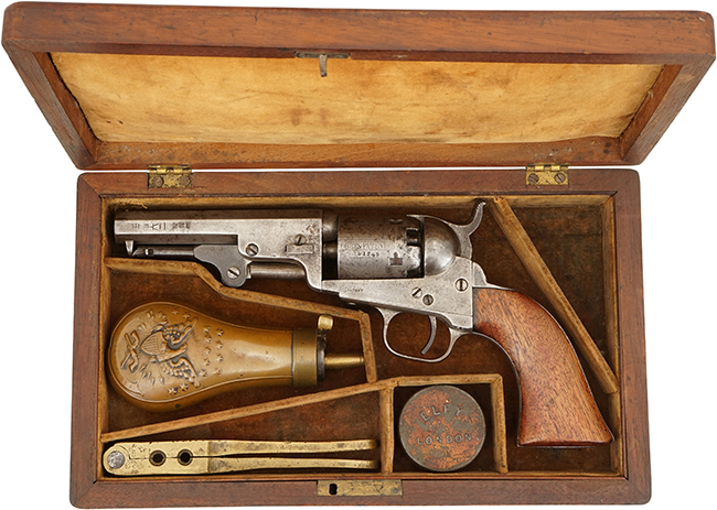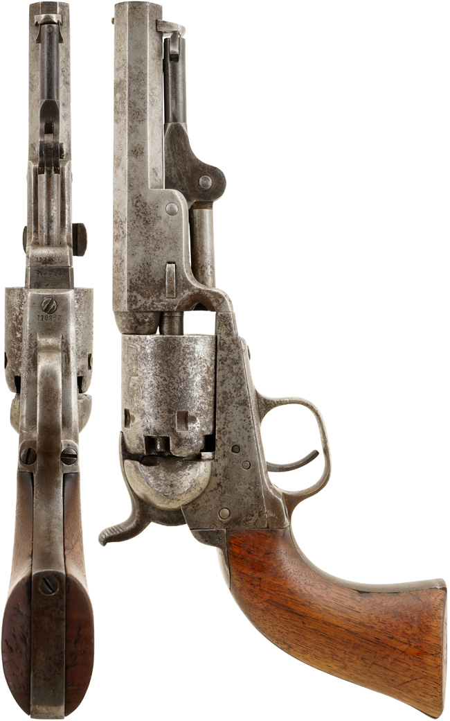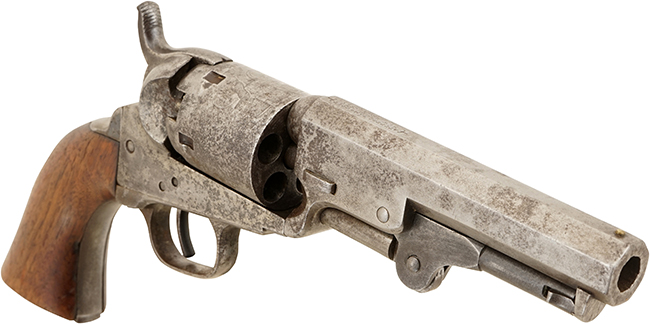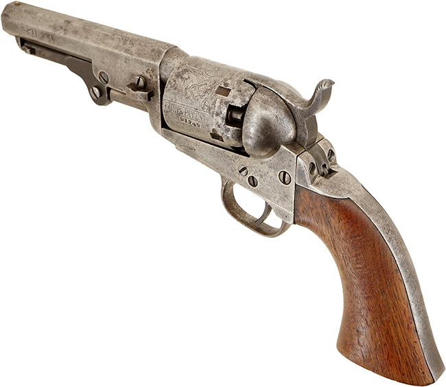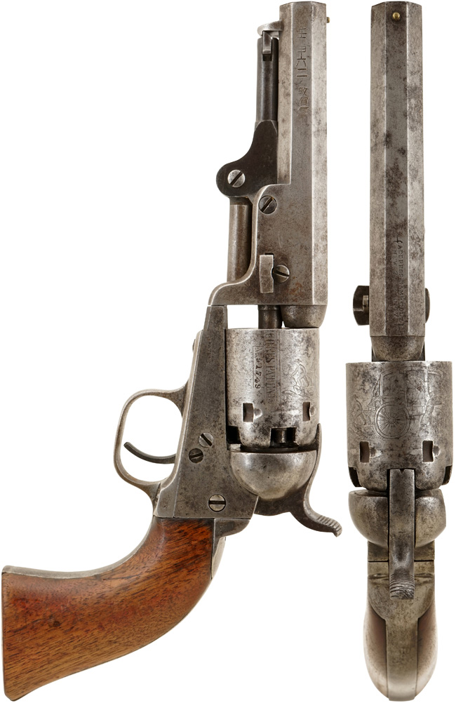 (種別: 管打式銃砲、全長:24.4cm、銃身長:10.1cm、口径:0.8cm、銘文: ADDRESS SAML COLT / NEW-YORK CITY)