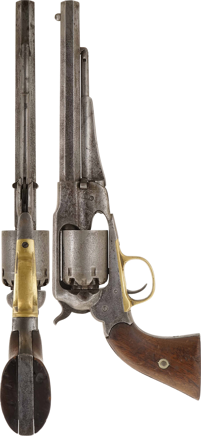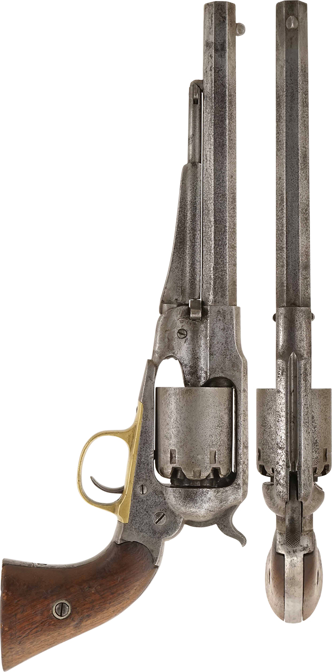 レミントン ニューモデル アーミー リボルバーはE. Remington and Sons社 (現在のレミントン・アームズ社) で製造されました。 南北戦争 (1861年-1865年) では同じシングル・アクションのパーカッション・リボルバーであるコルト M1851と共に主要拳銃として使用されました。 南北戦争時当初はコルト製の拳銃が多く供給されていましたが、1864年のコルト社工場火災以後はレミントン製リボルバーの北軍への供給量が最も多くなりました。 レミントン ニューモデルはコルト製の物よりも耐久性に優れていた他、素早いリロードが可能でした。 製造されたモデルの内、.44口径で銃身長が8インチのモデルがアーミー、.36口径で銃身長が7.42インチのモデルがネービーと呼ばれました。 一見しただけでは、アーミーとネービーの区別は殆ど付かないほど、大きさに差がありません。