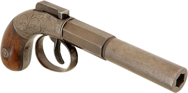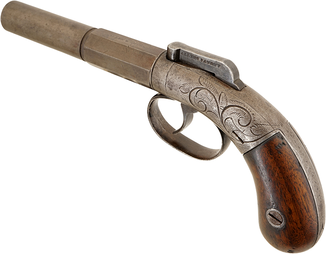 (種別: 管打式銃砲、全長:19.3cm、銃身長:10.0cm、口径:1.0cm、銘文: ALLENS PATENT)