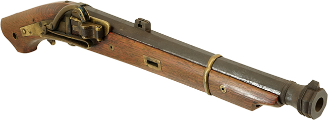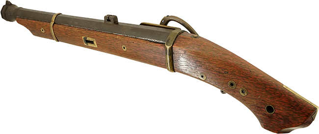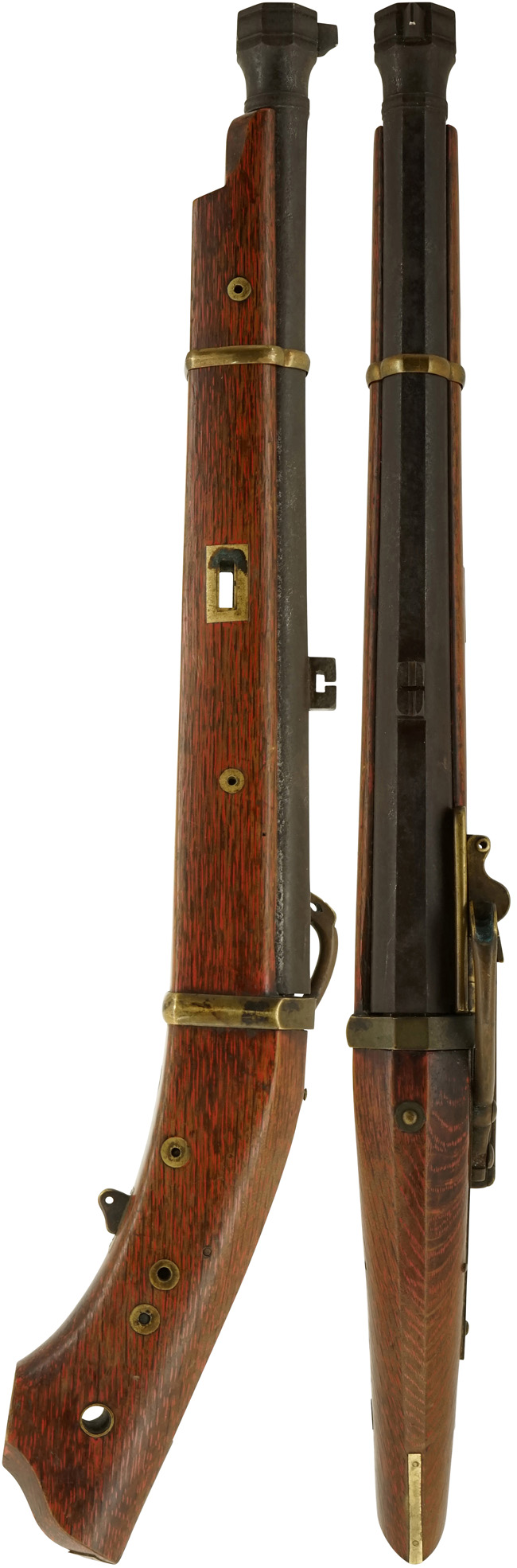 昭和30年8月29日に岡山県教育委員会で交付された銃砲刀剣類登録証が付いた、可動する実物の古式銃です。 漫画家の松本零士先生の旧蔵品です。無可動実銃ではありません。