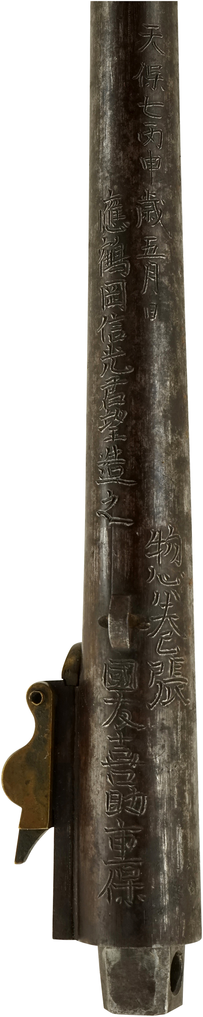 (種別: 火縄式銃砲、全長:cm、銃身長:31.5cm、口径:cm、銘文: 惣器(巻)張 国友喜助〇保 天保七丙申 應鶴岡信光君望造之)