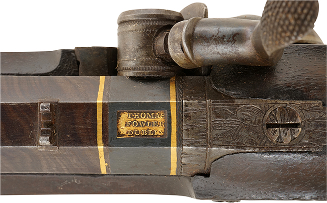 (種別: 管打式銃砲、全長: 39.8cm、銃身長:26.3m、口径:1.25cm、銘文: FOWLER/THOMAS FOWLER DUBLIN)