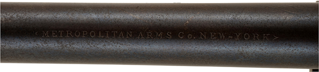(種別: 管打式銃砲、全長: 26.4cm、銃身長:13.9cm、口径:0.9cm、銘文: METROPOLITAN ARMS NEW YORK)