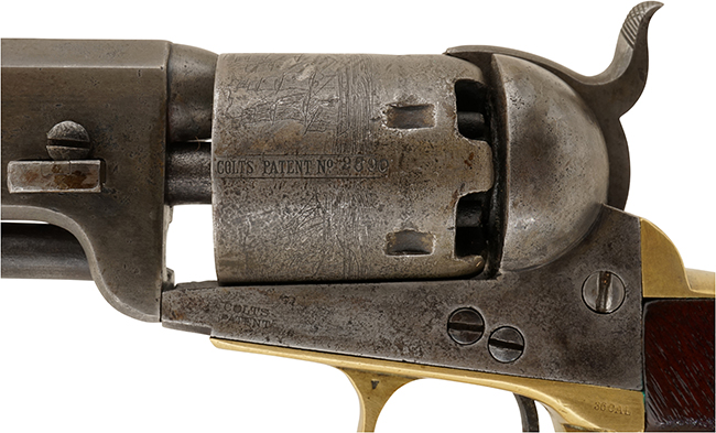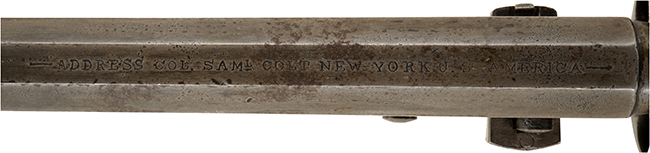 (種別: 管打式銃砲、全長: 35.3cm、銃身長:18.9cm、口径:0.95cm、銘文: ADRES COL SAML COLT NEW-YORK U.S.)