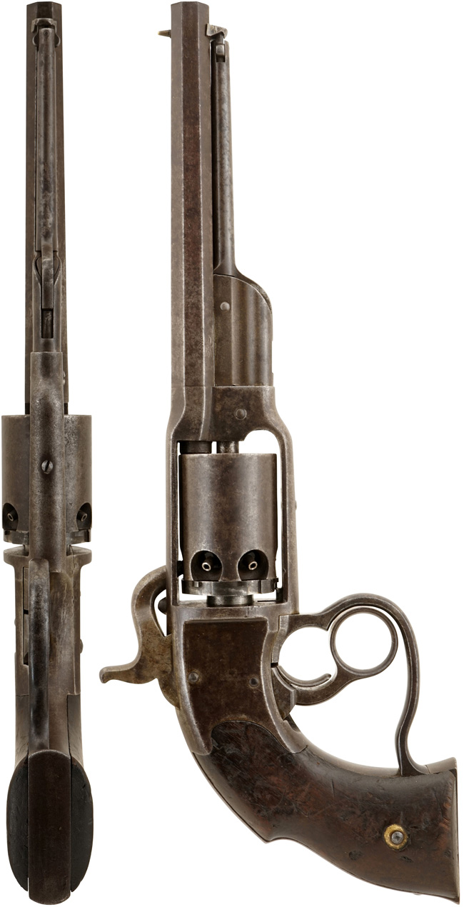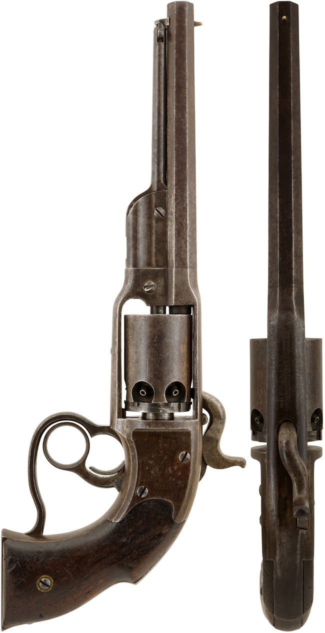 本銃は当初合衆国政府 (北軍) から5,500挺の発注が行われましたが、後に約12,000挺に増やされました。 生産された約2万挺の内、半数以上が政府に納入された事から、ガバメント・コントラクト (政府契約) の拳銃と呼ばれています。 軍納入分以外については一般市場でも販売されましたが、その多くを南軍が購入し、南北戦争中は南北両軍で使用されました。 本銃を制式に採用したのは、北軍では1st Wisconsin U.S. Volunteer Cavalry (ウィスコンシン第1義勇騎兵隊)、2nd Wisconsin U.S. Volunteer Cavalry (ウィスコンシン第2義勇騎兵隊)、5th Kansas Volunteer Cavalry (カンザス第5義勇騎兵隊)、7th New York Cavalry (ニューヨーク第7騎兵隊) でした。 一方、南軍では34th Battalion of Virginia Cavalry (バージニア第34義勇騎兵大隊)、 35th Battalion of Virginia Cavalry (バージニア第34義勇騎兵大隊)、11th Texas Cavalry (テキサス第11騎兵連隊)、7th Virginia Cavalry (バージニア第7騎兵隊)、7th Missouri Cavalry (ミズーリ第7騎兵隊) により使用されました。 本銃は口径が.36口径である事から、ネービー・モデルと呼ばれていますが、海軍では極少数 (約800挺) の調達に留まりました。 (KK Updated)