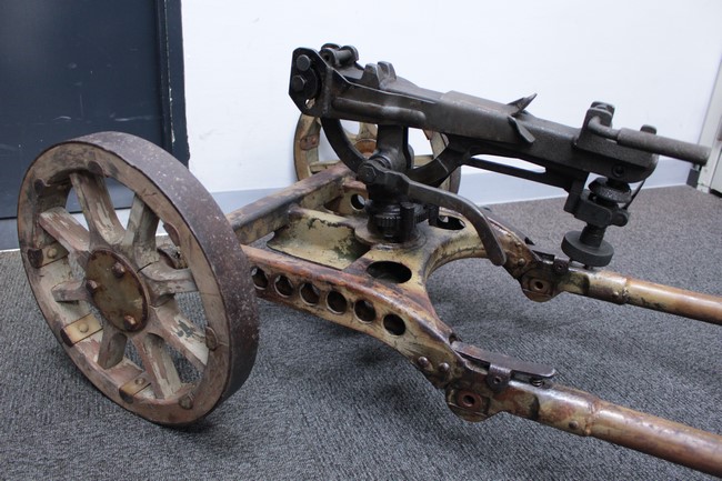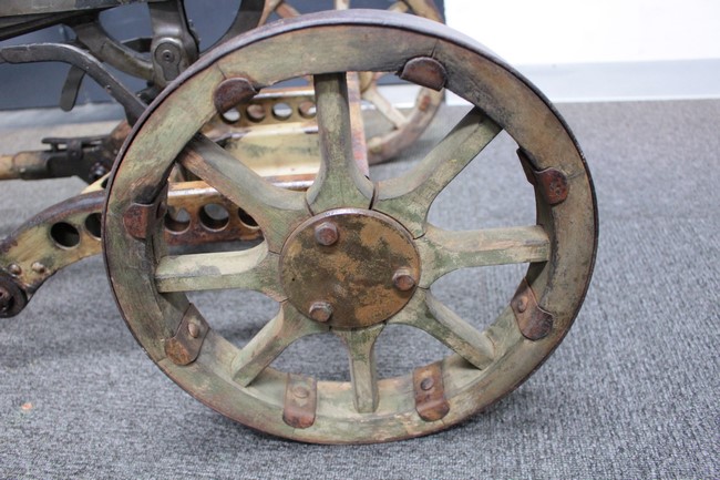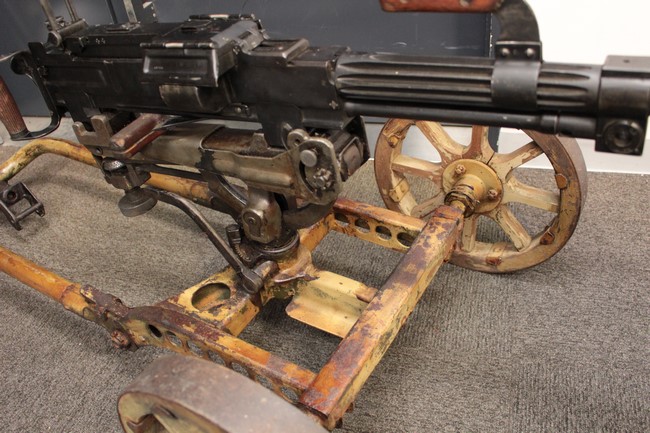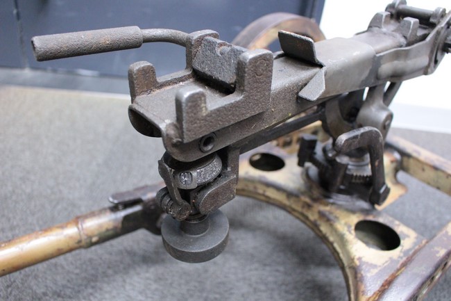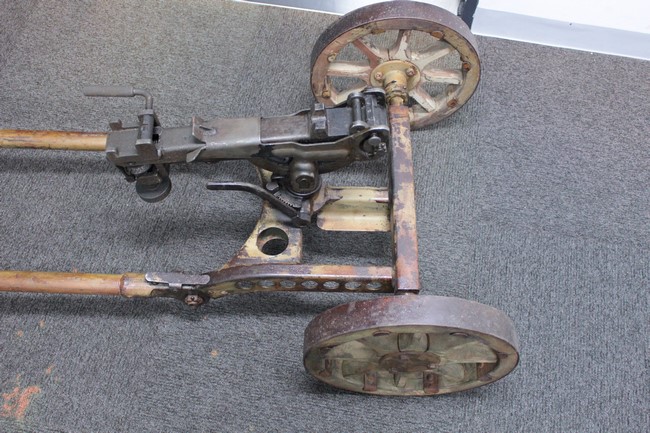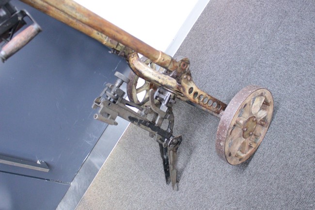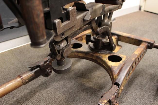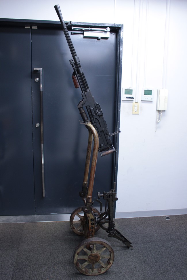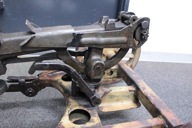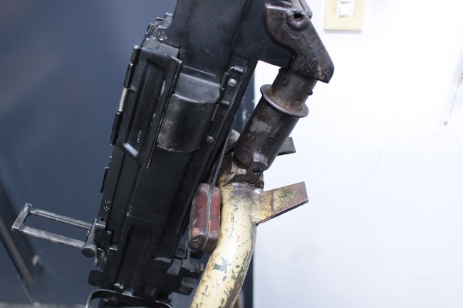 サンド色に塗られた銃架については塗装の剥がれや表面錆が多々見られるものの、基本的に良好な状態が保たれており、折り畳みや地上射撃状態から対空射撃姿勢への変更等は問題なく行う事が可能となっています。