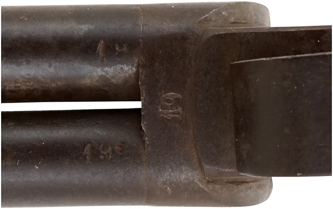 本品のシリアルNo.は19で、2本の銃身の基部やフレーム前端下面の他、左右のハンマー基部にマッチしたシリアルNo.が打刻されています。