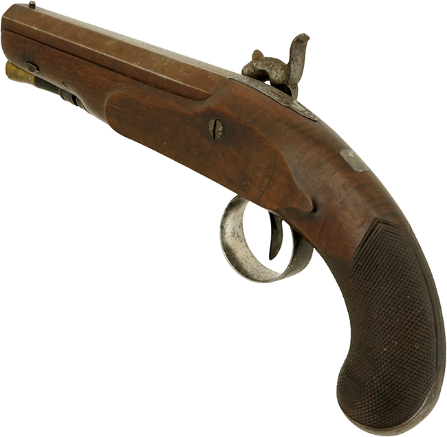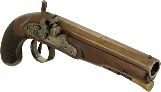 英国のPhilip Bond (フィリップ・ボンド) 社が製造した、管打式 (パーカッション式) の単発拳銃です。