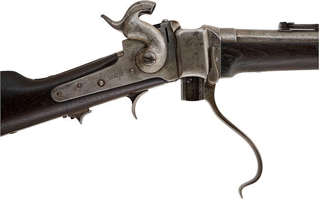 本品は、ローレンス・ペレット・システム (Lawrence Pellet Primer System) と呼ばれる、ペレット・プライマーがハンマーと連動して自動的にセットされるシステムがオリジナルのまま完全に残った極めて希少な品です。 1859年に特許が取得されたローレンス・ペレット・システムは、通常のパーカッション・キャップに比べて発火が不確実であり、またプライマーの装填操作も煩雑であった事から、大半が取り外されてしまいました。 その為、国内外に現存するシャープス銃において、このシステムが残っている個体は殆ど見られません。