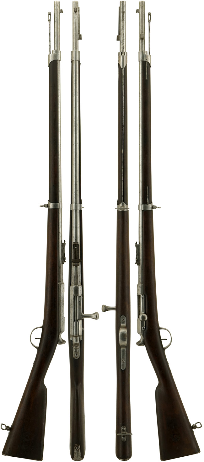 1841年に帝政ドイツ (プロイセン) は、世界初のニードル・ファイア式ボルト・アクション・ライフルであるドライゼ ライフルを開発して世界中を驚かしました。 1862年型のドライゼ・ライフルは完成度が高く、特にライバル国フランスがその新型小銃に脅威を感じていました。 その後、フランスはドライゼの機構にアレンジを加え、Antoine Alphonse Chassepot (1833-1905年) が発明したガス漏れ防止用機構を取り入れて、1864年にシャスポー ライフルが開発されました。 1866年にはシャスポー M1866 歩兵銃としてフランス軍の制式小銃となりました。 シャスポー ライフルは、フランスのサンテティエンヌ造兵廠などフランス国内で100万挺以上製造された、フランスを代表する画期的な小銃でした。 また、イギリス、オーストリア、ベルギーなどでもライセンス生産が行われました。 1870~71年の普仏戦争では戦略上の理由でプロシア軍に大敗を喫してしまいましたが、シャスポー ライフルの活躍は目を見張るものがありました。 また、幕末期の慶應二年にはナポレオン三世から徳川幕府に対し2,000挺のシャスポー ライフルが贈られました。 その後、徳川幕府は追加でさらに2,000挺を注文したと言われています。 日本では、ニードル・ファイア式は火針式と呼ばれました。