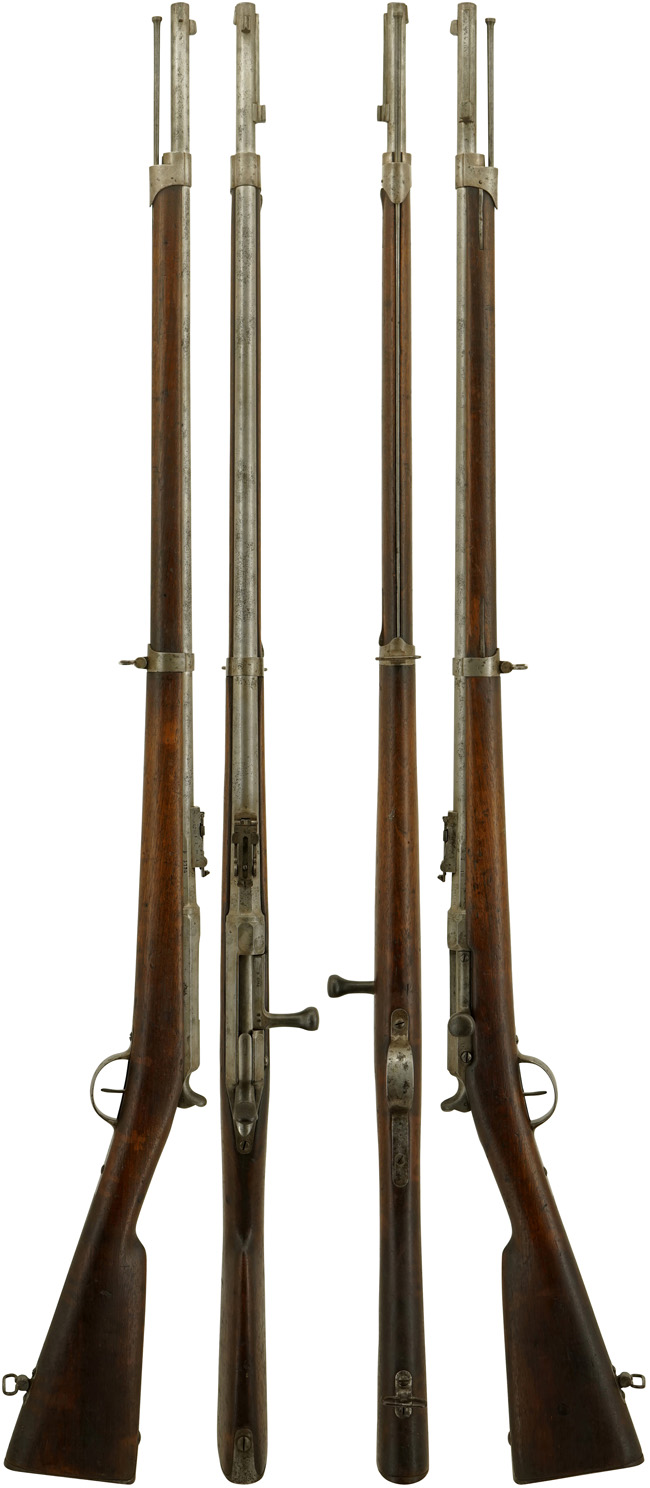 1841年に帝政ドイツ (プロイセン) は、世界初のニードル・ファイア式ボルト・アクション・ライフルであるドライゼ ライフルを開発して世界中を驚かしました。 1862年型のドライゼ・ライフルは完成度が高く、特にライバル国フランスがその新型小銃に脅威を感じていました。 その後、フランスはドライゼの機構にアレンジを加え、Antoine Alphonse Chassepot (1833-1905年) が発明したガス漏れ防止用機構を取り入れて、1864年にシャスポー ライフルが開発されました。 1866年にはシャスポー M1866 歩兵銃としてフランス軍の制式小銃となりました。 シャスポー ライフルは、フランスのサンテティエンヌ造兵廠などフランス国内で100万挺以上製造された、フランスを代表する画期的な小銃でした。 また、イギリス、オーストリア、ベルギーなどでもライセンス生産が行われました。 1870~71年の普仏戦争では戦略上の理由でプロシア軍に大敗を喫してしまいましたが、シャスポー ライフルの活躍は目を見張るものがありました。 また、幕末期の慶応2年にはナポレオン三世から徳川幕府に対し2,000挺のシャスポー ライフルが贈られました。 その後、徳川幕府は追加でさらに2,000挺を注文したと言われています。 日本では、ニードル・ファイア式は火針式と呼ばれました。