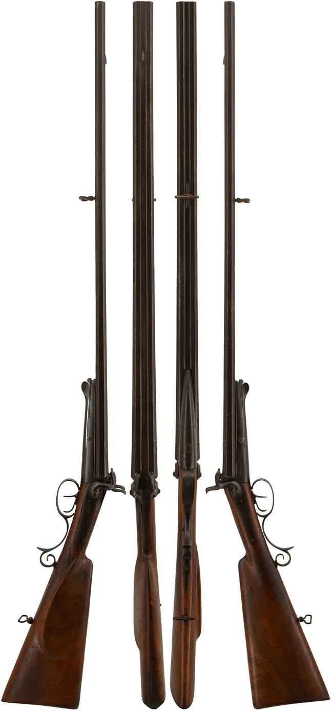 本品は漫画家の松本零士先生のコレクションの中の一挺です。 水平二連式のコンビネーション・ガンは元々数も少なく、特にピン・ファイア式のドイツ製コンビネーション・ガンとなると、国内における現存数もごく僅かであると考えられます。 さすが松本零士先生のコレクションと言える一挺です。 (KK)