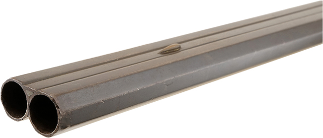 本品は銃身長が実測784mmのオクタゴン (八角)・バレルを左右に2本並べた水平二連式となっています。 銃身は右側が口径約15mm (24GA相当) の散弾銃用のスムース・ボア (滑腔銃身) で、左側は口径約15,2mmで銃身内に8条の緩やかなライフリングが施されたライフル銃身となっています。 このように、ライフルと散弾銃を組み合わせた銃器は、英語で一般的に「コンビネーション・ガン (Combination Gun)」と呼ばれ、水平二連式の場合は「ケープ・ガン (Cape Gun)」もしくはドイツ語で「ビュックスフリンテ (Buechsflinte)」と呼ばれる場合も有ります。 また、コンビネーション・ガンは、それぞれの銃身数に応じた名称も存在しており、例えば、銃身が3本のものはドイツ語で「三つ子」を意味する「ドリリング (Drilling)」、銃身が4本のものは「四つ子」を意味する「ヴィーアリング (Vierling)」、銃身が5本のものは「五つ子」を意味する「フンフリング (Fuenfling)」と呼ばれます。 本品はドイツ製の水平二連式コンビネーション・ガンで、ビュックスフリンテに相当する品です。