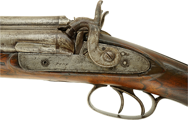 本品を製作したPyne社については、詳細は不明ですが、同社が製造した水平二連散弾銃が複数確認されています。 (KK)(MM)