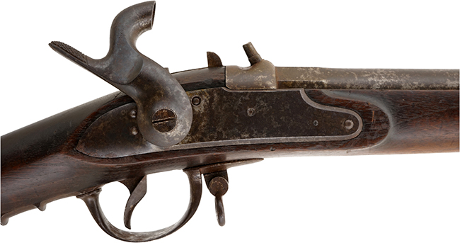 本品は幕末に日本で作られた和製ゲベール銃の原型になった品です。 国内に現存する和製ゲベール銃の殆どが本個体と殆ど変わらない形状になっており、その意味でも原型となったオリジナルのモデルは貴重となっています。 本品は前装式滑腔銃で、銃身が約1,000mmと長い、3バンドの歩兵銃型です。 本品にはモデル名を示す刻印は入っていませんが、銃身を外した際に確認出来るパーカッション・ニップル取り付け基部の下部に「T」の刻印が入っている他、トリガー・ガード前方に「S」、ハンマー裏側にアラビア数字の「2」が確認出来る事から、和製ではない事が判ります。 また、銃身前部の下部には着剣用の突起が設けられています。 本品の製造国は現時点では不明ですが、当時はオランダ軍用であってもスイスやフランス同様に銃器製造の先進国であったベルギーで製造された品も多く存在します。