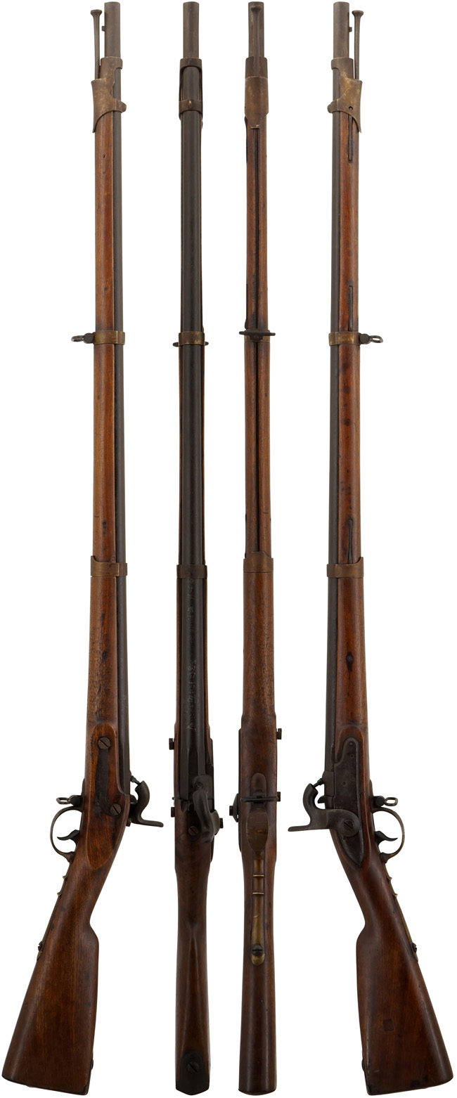 「ゲベール (Geweer)」とはオランダ語で小銃を意味し、幕末の日本では洋式前装式小銃の一般名詞になっていました。 ゲベール銃は日本でも倣作が行われ、古いものでは火打ち式 (フリント・ロック=燧石式) の撃発装置が付いた品もありましたが、日本で倣作された品の多くは管打ち式 (パーカッション・ロック) でした。 元々はフランス軍が1670年に採用したフリント・ロック式小銃を改良したモデルをオランダ軍が1777年に採用し、そのタイプの銃を天保二年 (1832年) に長崎の高島秋帆が輸入したのが日本におけるゲベール銃運用の始まりです。 しかしながら、当時ヨーロッパ諸国は概ね同じようなタイプの小銃を制式化していたため、日本に輸入された正確なモデル名までは断定できません。 当時欧米諸国で唯一日本と貿易ができたオランダが輸出したため、オランダ語で小銃を意味するゲベールが呼称として一般化しましたが、当時輸入されたゲベール銃は必ずしもオランダ製小銃であったとは言えません。 2013年放送のNHK大河ドラマ「八重の桜 (第1話)」で、幼少の八重が兄の使うフリント・ロック式小銃を見て何かと聞いたときに、兄が「ゲベール (銃) だ」と答えていました。 あくまでもドラマの中でのやり取りですが「洋式小銃=ゲベール銃」というのが当時の一般的な認識だったのではないでしょうか。 弘化年間 (1844-47年) に雷管式が日本に伝わると、従来のフリント・ロックはパーカッションに改造されましたが、日本で倣作された品の殆どがこのパーカッション式です。 尚、同じパーカッション式でも、ライフリングのない前装滑腔銃をゲベールと呼称し、ライフリングのある前装施条銃は使用弾薬によって当時はミニエー銃、またはエンピール銃 (=エンフィールド銃)、鳥羽銃 (鳥羽=タワー、タワー刻印が入ったエンフィールド銃) と一般的に呼ばれました。 これらの銃は文久年間 (1861-64年) 頃に輸入されましたが、形状が良く似ていたので日本では混同されており、はっきりとエンフィールドとミニエーの違いを区別するようになったのは慶応三年 (1867年) 頃と言われています。 日本製のゲベール銃は日本各地の元々火縄銃を製作していた銃工によって作られたため、一挺一挺に小差があります。 尚、和製ゲベール銃の原型となったのは、1840年頃に作られたオランダ製コロニアル マスケットではないかと言われています。 国内で発見される和製ゲベール銃に一定の共通点が見られるので「幕末期にどのような形で同一規格のゲベール銃が作られたか?」が今後の研究課題となるでしょう。