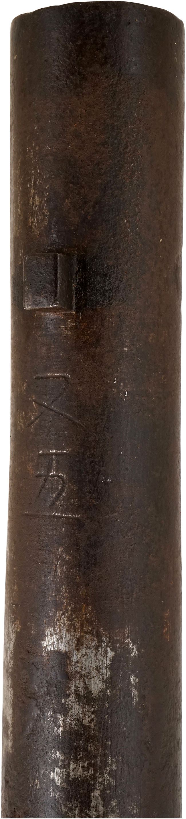 本品の銃身下面には「三十五」の番号が彫られており、銃床内部にも墨書きにより同じ番号が確認出来ます。 また、アッパー・タング下面には漢数字の「十」、銃身先端下面には「又十」と読める文字が確認出来ます。