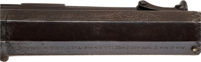 Parker Field & Sons社は、18世紀末から19世紀末にかけてロンドンのHigh Holbornに本拠を構えた老舗銃器メーカーです。 1783年にジョン・フィールド (John Field) が同地で金細工師、刀剣師、銃工として事業を始めた事に端を発し、その後、ウィリアム・パーカー (William Parker) との提携や親族関係を経て発展しました。 ウィリアム・パーカーはケント公エドワード王子 (ヴィクトリア女王の父) やウィリアム4世の御用銃工を務め、その後も同社は「ヴィクトリア女王陛下御用達」の称号を得て、高級顧客への信頼と知名度を確立しました。