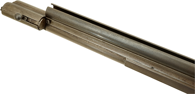 作動については完全で、ハンマーを起こした際のフル・コックはしっかりと掛かり、フル・コック状態でリング・レバーを操作すると、カートリッジ・リフター (エレベーター) が上下するとともに、ボルトが前後します。 フル・コック位置でトリガーを引くと、ハンマーがスムーズに落ちます。 弾倉チューブ操作についても問題なく、フォロワーを銃口側に完全にスライドさせた状態で弾倉前部を回転させると、弾倉チューブ前部が開きます。 銃身内は銃口から銃身後部まで完全に抜けて (通って) おり、若干の表面錆は見られるものの、ライフリングは深くはっきりと確認出来ます。