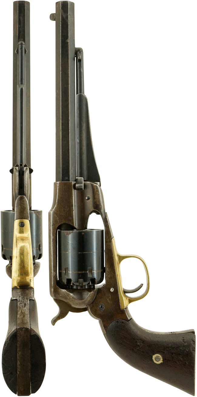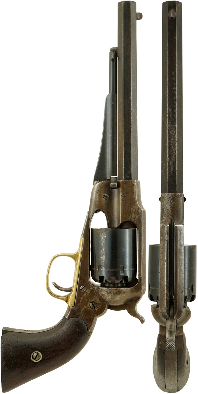 レミントン ニューモデル アーミー リボルバーはE. Remington and Sons社 (現在のレミントン・アームズ社) で製造されました。 南北戦争 (1861年-1865年) では同じシングル・アクションのパーカッション・リボルバーであるコルト M1851と共に主要拳銃として使用されました。 南北戦争時当初はコルト製の拳銃が多く供給されていましたが、1864年のコルト社工場火災以後はレミントン製リボルバーの北軍への供給量が最も多くなりました。 レミントン ニューモデルはコルト製の物よりも耐久性に優れていた他、素早いリロードが可能でした。 製造されたモデルの内、.44口径で銃身長が8インチのモデルがアーミー、.36口径で銃身長が7.42インチのモデルがネービーと呼ばれました。 一見しただけでは、アーミーとネービーの区別は殆ど付かないほど、大きさに差がありません。