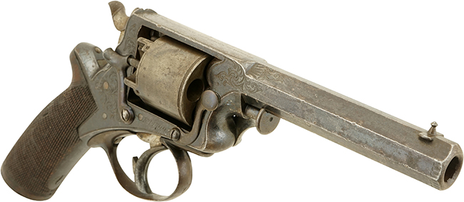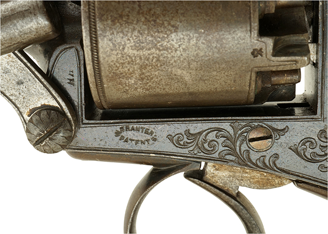 本品の銃身上面には「WM & JNO RIGBY, 24 SUFFOLK ST. DUBLIN」の刻印が入っていますが、これは アイルランド・ダブリンに所在していたWill'm & John Rigby社を表しており、同社はダブリンにおけるトランター・リボルバーの販売店であったと考えられます。 Rigby社は1775年にジョン・リグビーによってアイルランドのダブリンで設立された銃器メーカーで、1865年には初代ジョン・リグビーの孫であるジョンがロンドン支店を開設しました。 尚、ダブリンでの事業は1897年2月までに終了しています。 同社は現在もロンドン中心部のヴォクスホールを拠点にJohn Rigby & Co.として銃器の製造・販売を続けています。