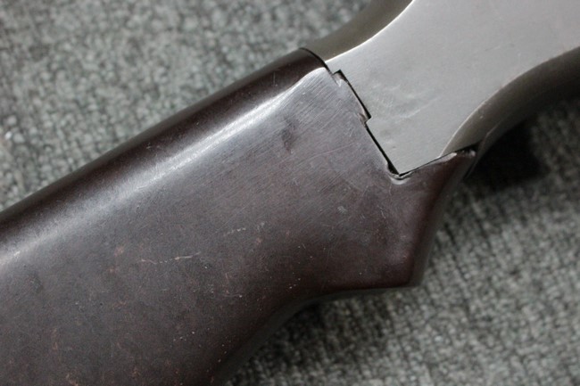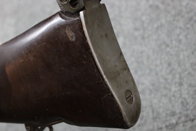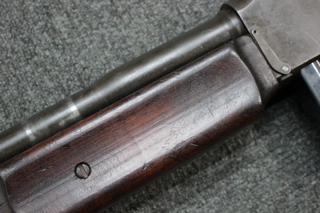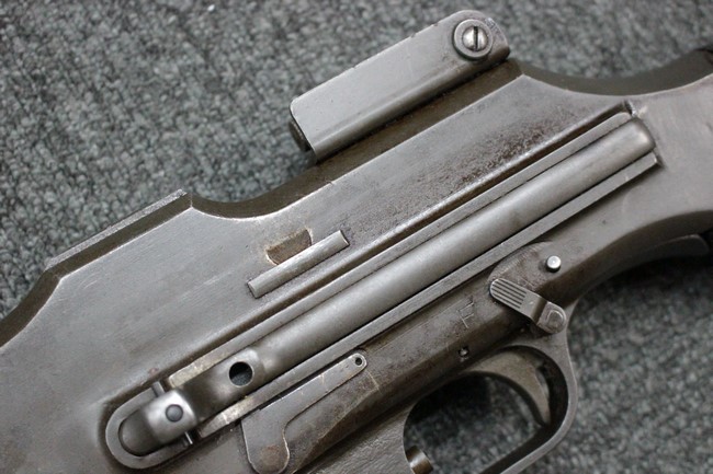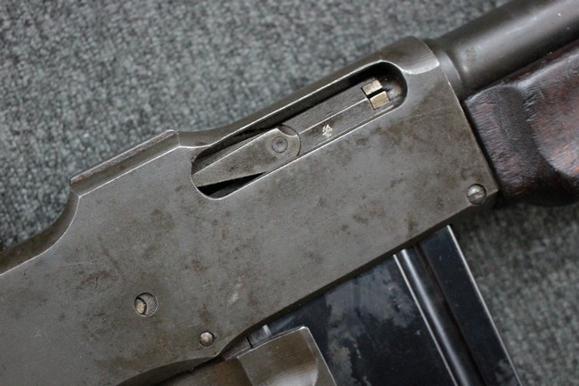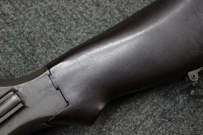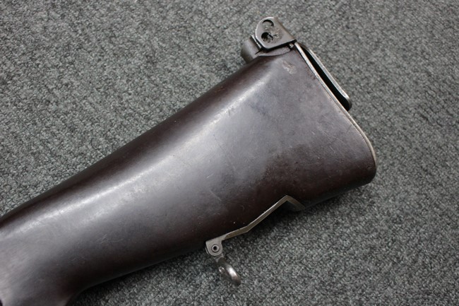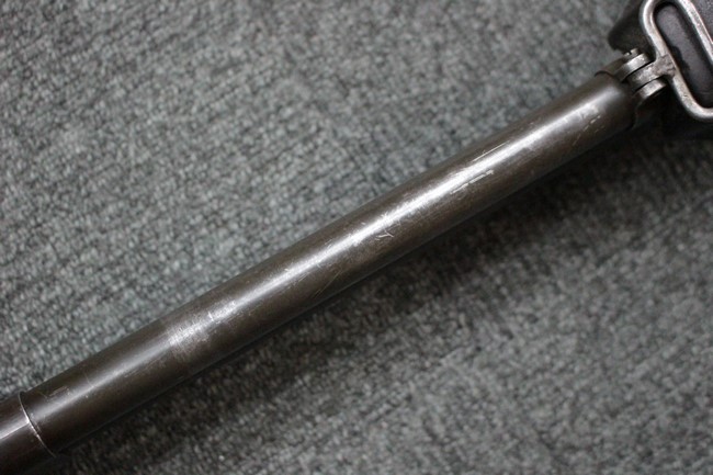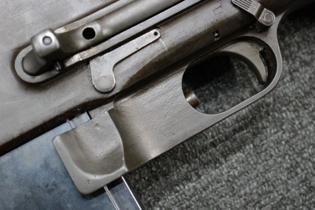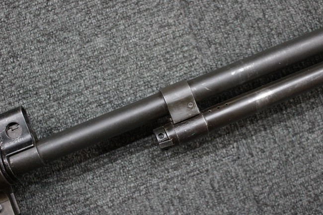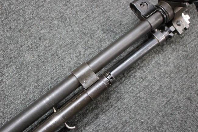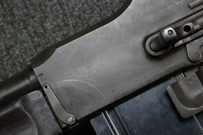 本品は全体にやや使用感が見受けられ、金属部は打ち傷や擦れの他、角の部分などに仕上げが若干薄くなって金属の地肌が表れている箇所が見受けられますが、大きな破損や欠損、朽ち込み等は見受けられず、比較的しっかりとした状態が保たれています。 木製ハンドガードについてもやや打ち傷が目立つものの、大きな破損等はみられず、概ねしっかりとした状態が保たれています。 樹脂製のバット・ストックについては若干の擦れや打ち傷、ストック取り付け部の下部に僅かな欠けが見られるものの、ストックの本体への取り付けについてもガタつきもなくしっかりとしています。 ショルダー・レストは大きな変形は見受けられず、開閉自体は問題なく行う事が可能です。 リア・サイトの起倒・調整やセレクターの切り替え、二脚の展開・伸縮、マガジンの着脱については問題なく行う事が可能です。 付属のマガジンは一部に若干の擦れなどは見受けられるものの、状態は良好です。 尚マガジン・スプリングは入っていません。