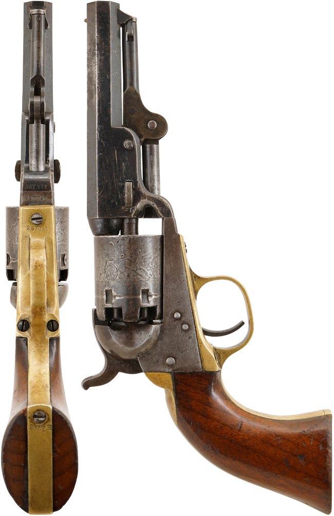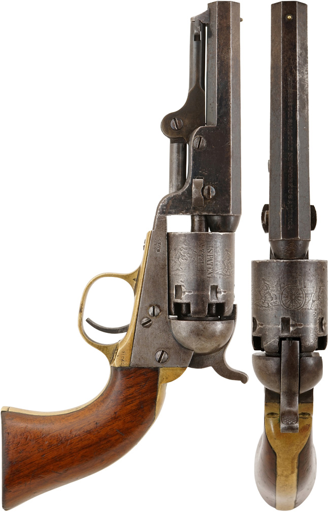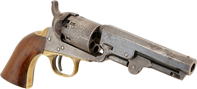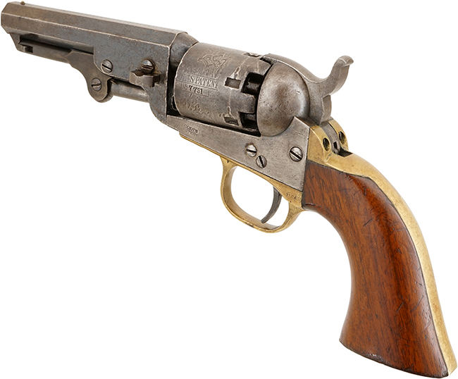 本品は漫画家の松本零士先生のコレクションの中の一挺です。 6連発モデルの生産数は約88,660挺程と言われており、M1849 ポケット リボルバーの総生産数が約34万挺である事を考慮すれば希少なモデルと言えます。 (KK)