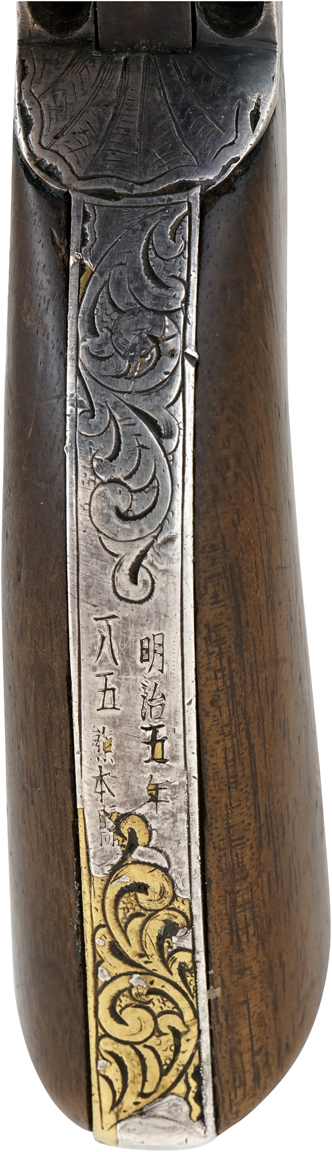 本品のバック・ストラップには「明治五年 一八五 熊本縣」の刻印が確認出来、これは壬申刻印に相当する検査刻印と考えられます。