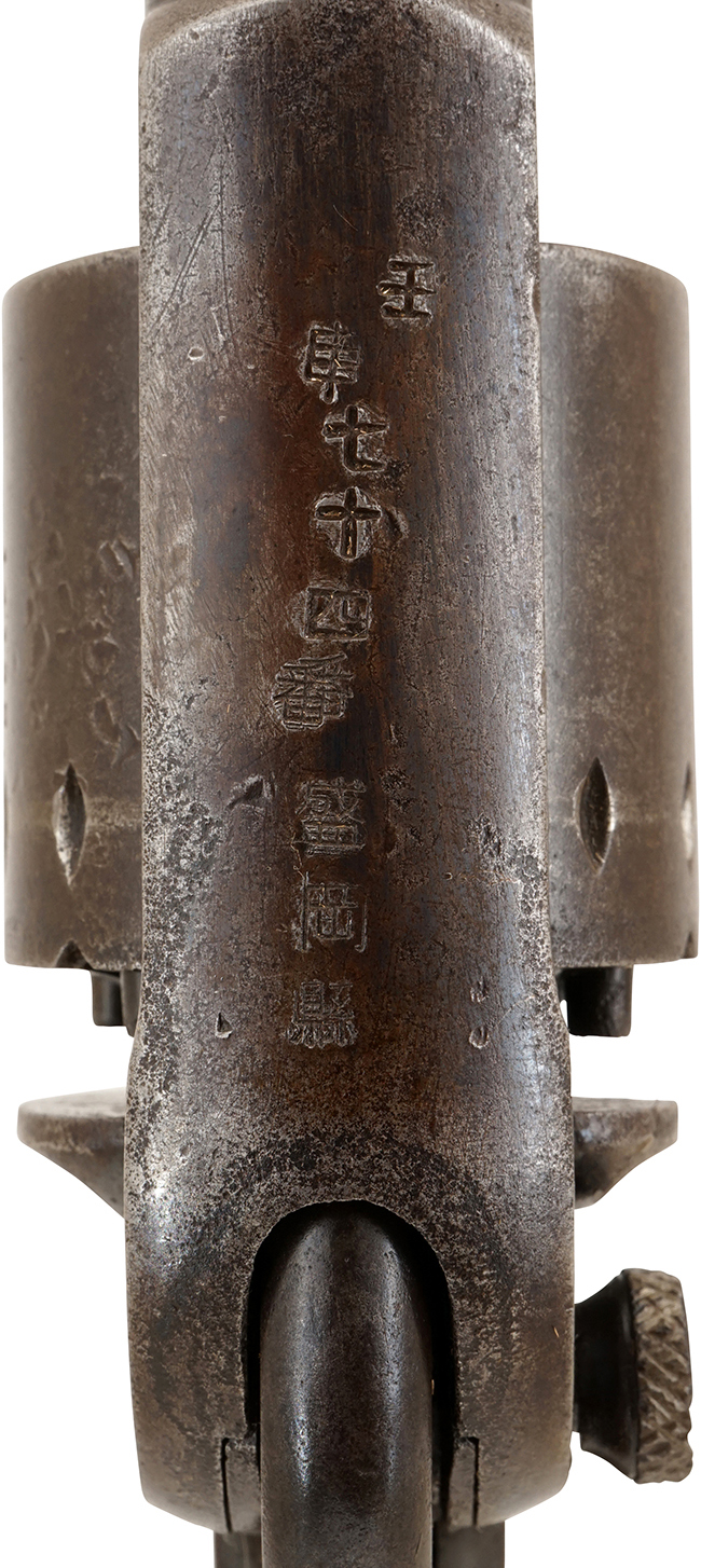 漫画家の松本零士先生の旧蔵品で、メカに拘っておられた事が窺われる一品です。当時の米国製管打ち式リボルバーとしては珍しいダブル・アクション式という点のみならず、特殊なシングル/ダブルの切り替え構造やトップ・ブレイク方式を備えた本銃は、コレクションとして所持する楽しみに加えて、メカニズム好きには大きな魅力となるでしょう。 (KK)(MM)