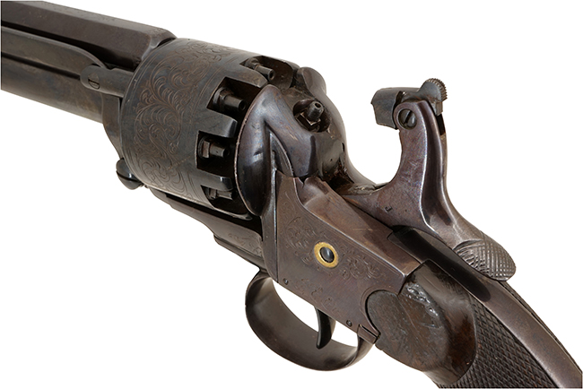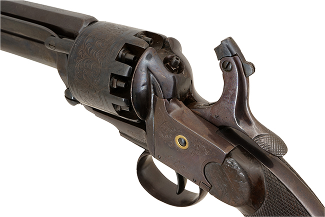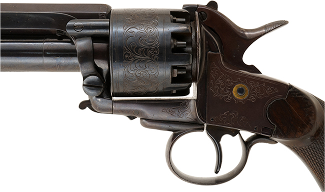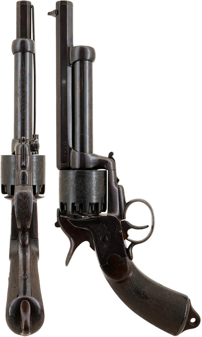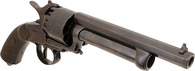 ル・マットは拳銃以外にもリボルビング・ライフルも少数製造され、その内の1挺が幕末の日本へ輸入され靖国神社に所蔵されており、本品のような拳銃型と合わせて2挺のル・マットが国内で確認されています。 ル・マット拳銃としては国内唯一の品と思われます。 (MM)(KK)