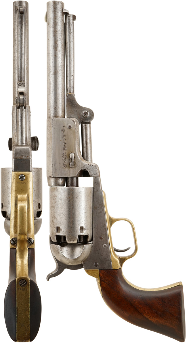 (種別: 管打ち式銃砲、全長: 37.5cm、銃身長:19.0cm、口径:1.2cm、銘文: ADDRESS SAML COLT NEW YORK CITY 10964)