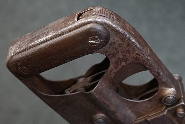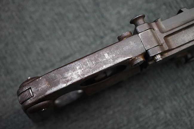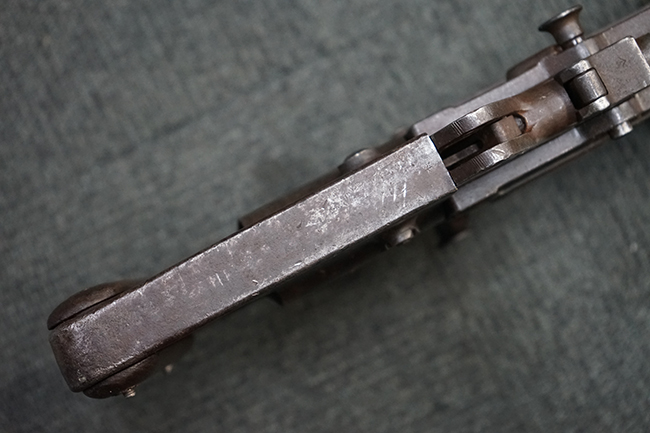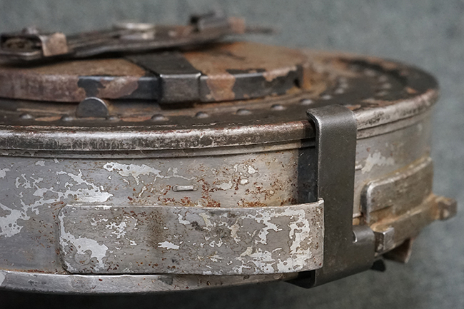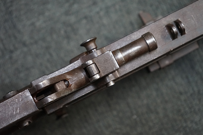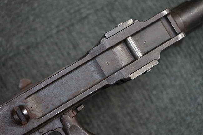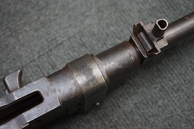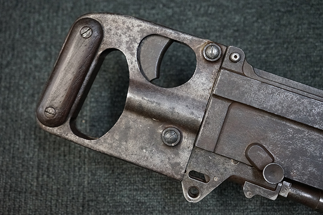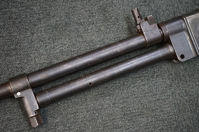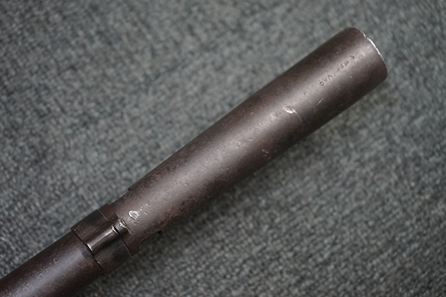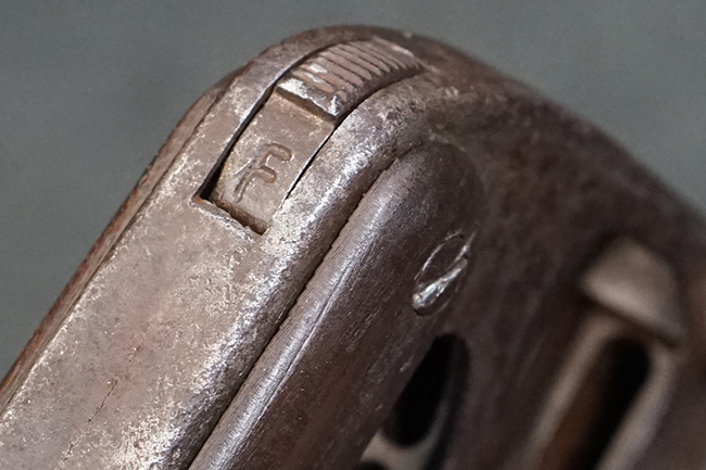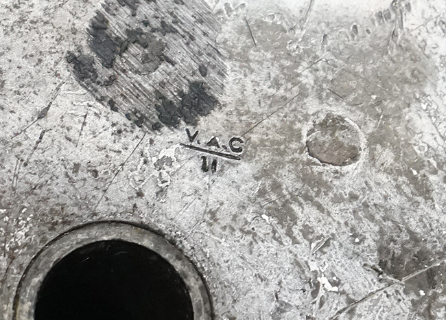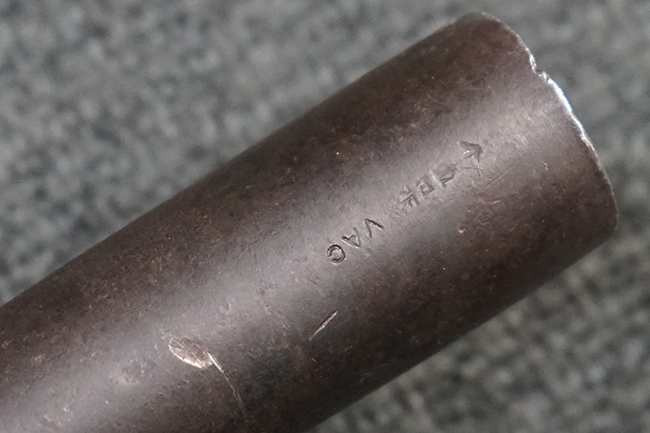 本品のレシーバー後部右側面にはやや見え難いものの、「VICKERS G.O. MARK I」のモデル名に加えて、シリアルNo.11397が打刻されています。 また、各部にビッカース・アームストロング社を示す「VAC」の刻印やブロード・アロー刻印が確認出来ます。
