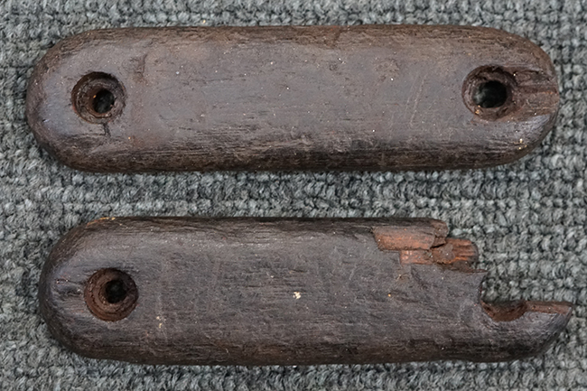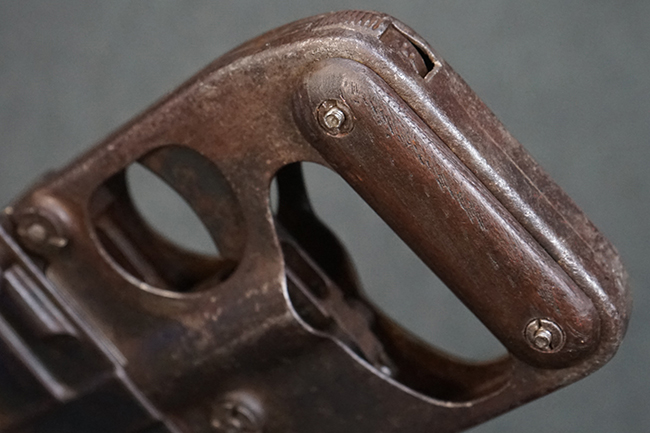 本品の金属部はやや経年による褪色や時代錆、表面錆痕が見受けられますが、大きな欠損等は見られず、概ねしっかりとした状態が保たれています。 木製のグリップ・パネルについては、オリジナルの木製グリップ及び樹脂製の精巧復刻品が付属いたします。 オリジナルの木製グリップには一部に欠けが見受けられます。 尚、前後サイトは付属いたしません。 マガジンの着脱については問題なく行う事が可能です。 付属のマガジンについては、やや仕上げの剥落や一部に表面錆痕が見られ、マガジン上部のストラップに欠品が見られますが、現状大きな変形等は見られず、概ねしっかりとした状態が保たれています。 尚、マガジンは一部が固定されています。