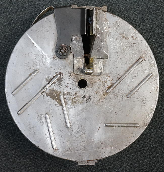 ボルトが開いた状態で固定された新加工品です。 (KK)