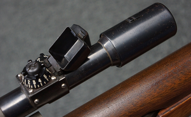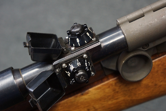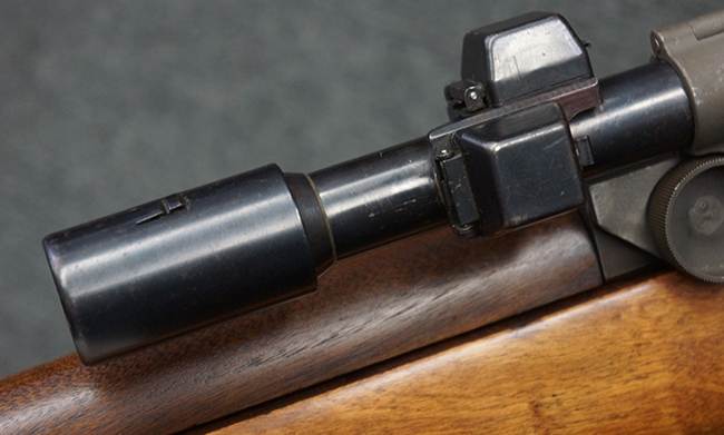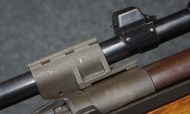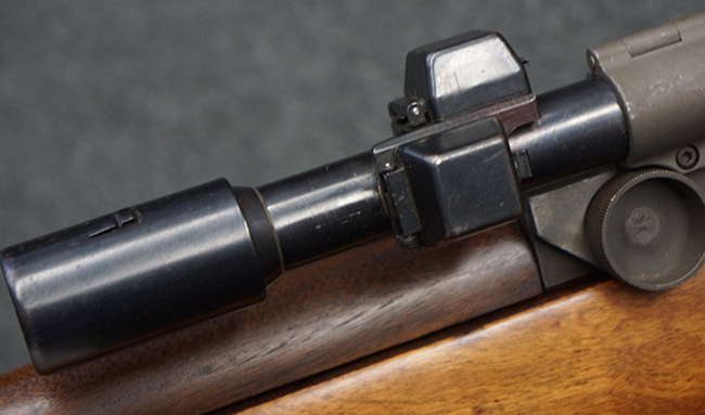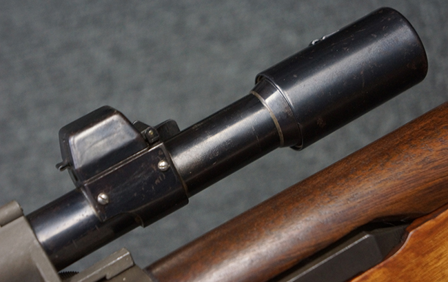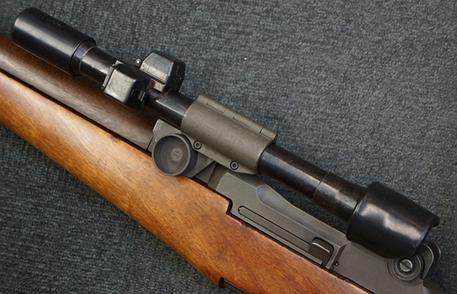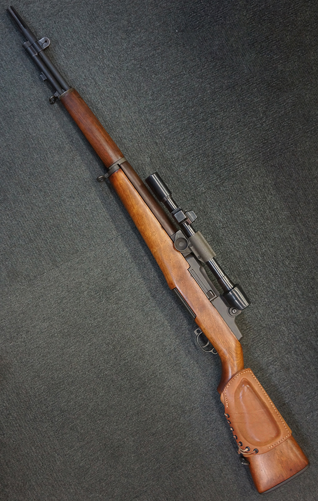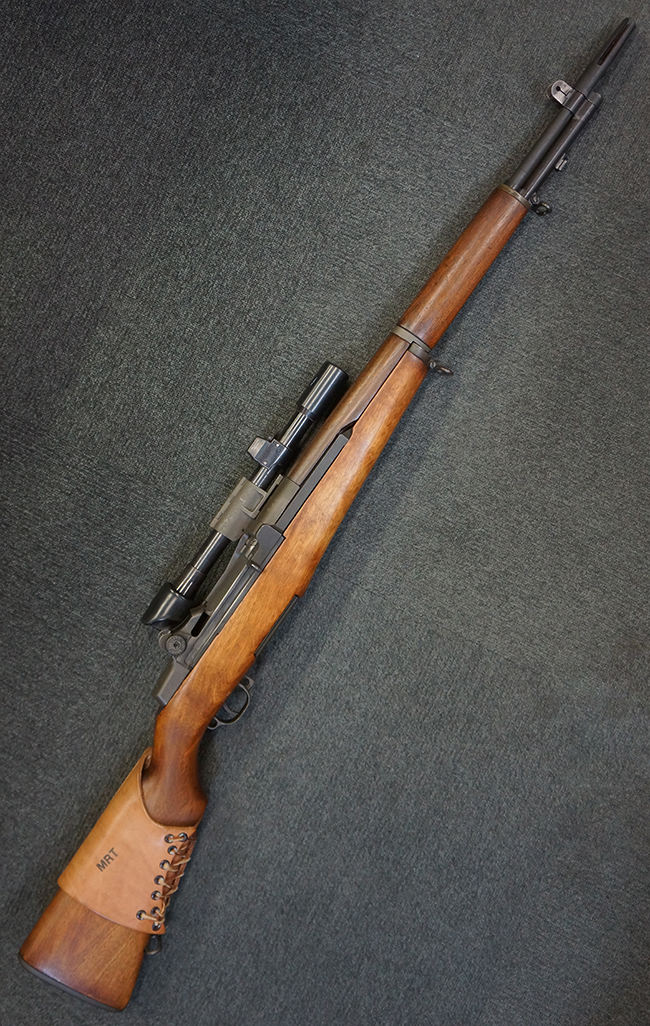 M1D 狙撃銃は、M1ガーランド ライフルにスコープを取り付けたスナイパー・モデルです。 ベースとなったM1ライフルは1936年にアメリカ軍に採用された自動小銃で、開発者ジョン・ガーランドの名前を取ってガーランド ライフルと呼ばれました。 M1ライフルの生産は1937年より始まりましたが、量産体制が整ったのは1940年頃からでした。 しかしながら、1945年の大戦終了までに400万挺以上作られ、その後朝鮮戦争で生産を再開し更に200万挺作られました。 特殊な装弾子 (クリップ) を使用するため弾の補充が難しいなどの欠点を指摘されますが、他国が主にボルトアクション式小銃を使用していた時代には画期的な自動小銃でした。
